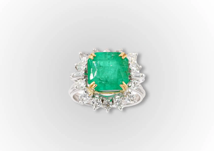 White Gold Emerald And Diamond Ring |