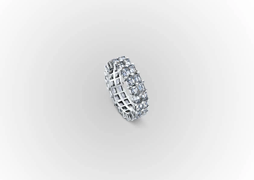 TWO LAYERED EMERALD CUT ETERNITY RING |