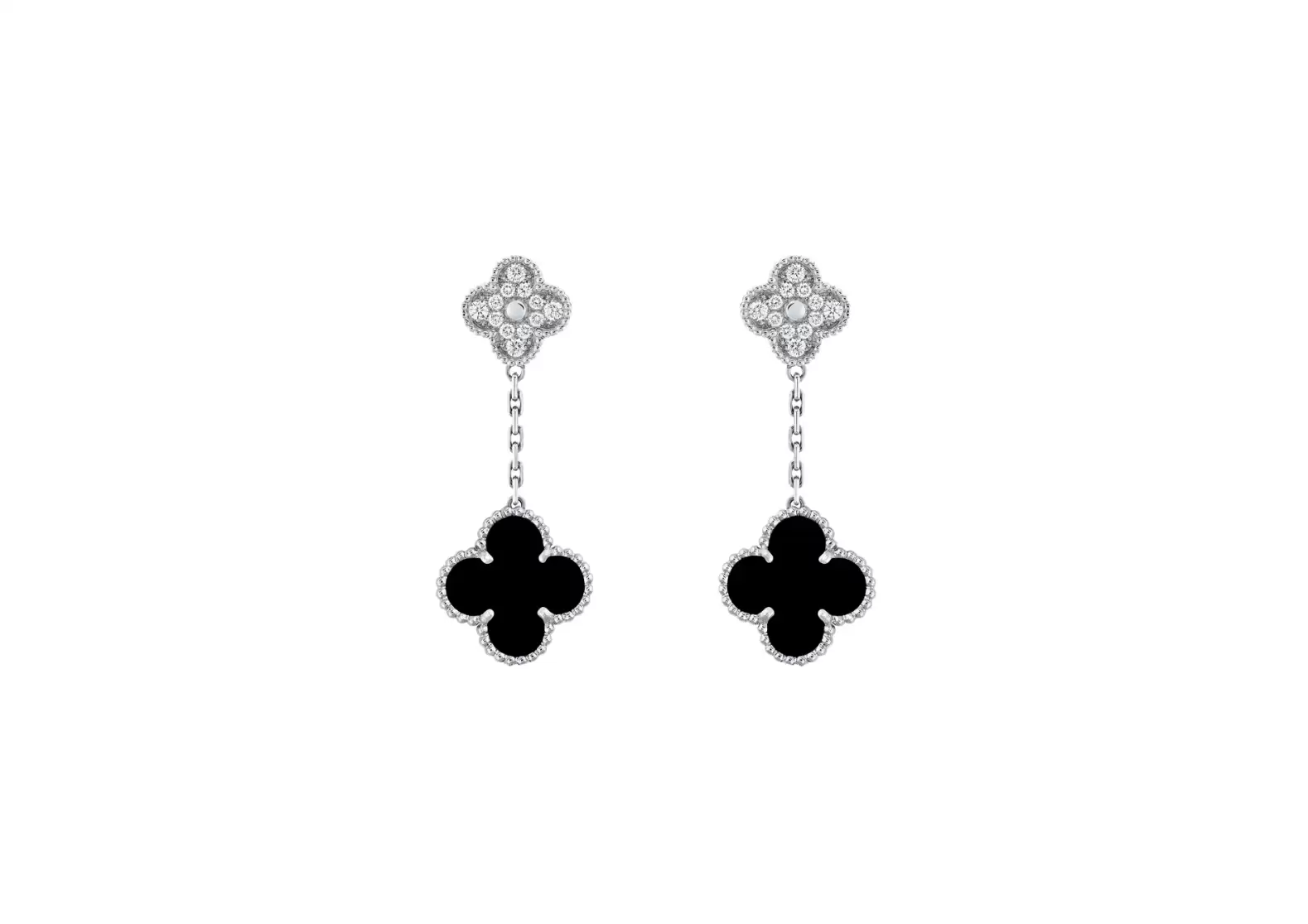 Don't miss the opportunity to own these extraordinary earrings. Embrace the allure of the Magic Alhambra collection and indulge in the elegance of rhodium plated 18K white gold, onyx, and round diamonds. Elevate your jewelry collection with the Preloved: Magic Alhambra earrings by Van Cleef & Arpels.
