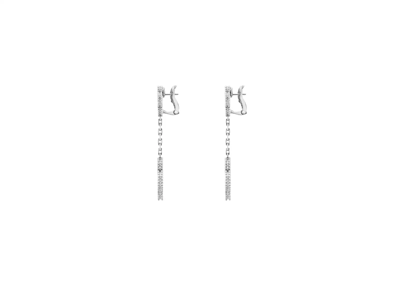 Each earring showcases a total of 24 diamonds, amounting to a remarkable 0.97 carats. The onyx stones add a touch of sophistication and elegance to the design, creating a harmonious contrast with the dazzling diamonds. It's important to note that as each stone is unique, the color and features may vary slightly from one creation to another, making each pair of earrings truly one-of-a-kind.