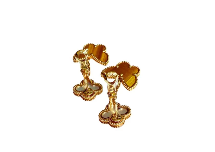 Adding a touch of warmth and charm, the Lucky Alhambra earrings also feature two tiger's eye stones. Known for their rich golden-brown hues and captivating chatoyancy, tiger's eye stones bring a sense of boldness and vitality to these earrings.