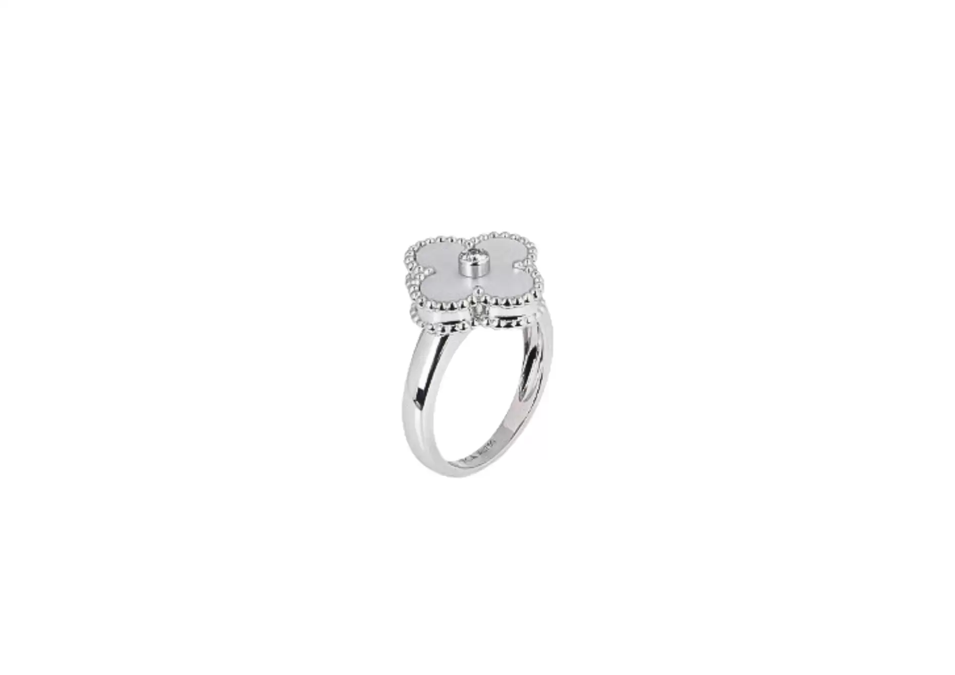 The Vintage Alhambra ring is a true testament to Van Cleef & Arpels' craftsmanship and dedication to creating timeless pieces of jewelry. Its vintage-inspired design and combination of white gold, diamond, and mother-of-pearl make it a versatile accessory that can effortlessly elevate any outfit.