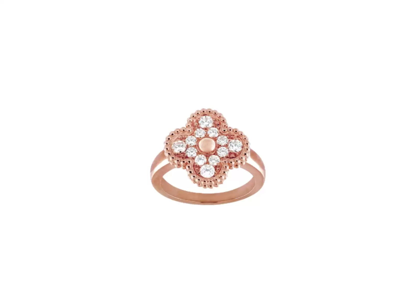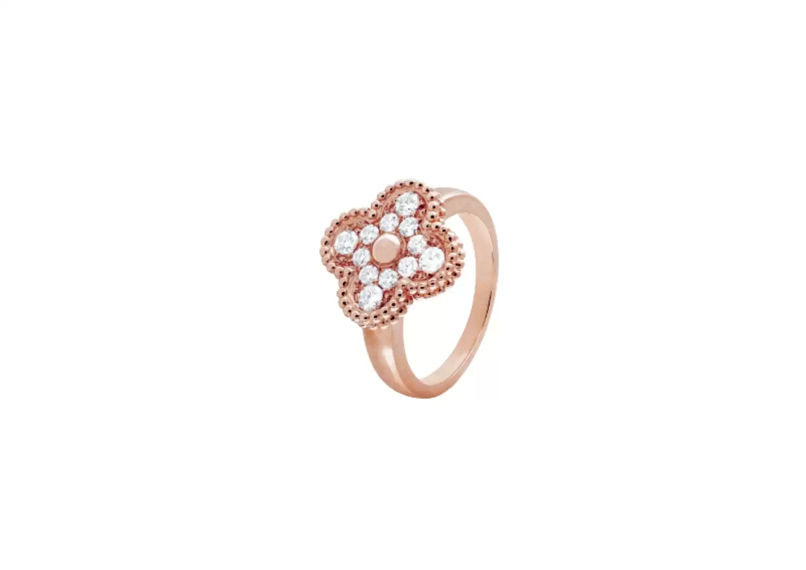 Introducing the exquisite Preloved: Vintage Alhambra Ring by Van Cleef & Arpels. Crafted with utmost precision, this stunning piece showcases the timeless beauty of 18K rose gold and round diamonds. The diamond quality of this ring ranges from DEF, ensuring a dazzling display of brilliance and clarity, all the way to IF to VVS, guaranteeing exceptional quality.