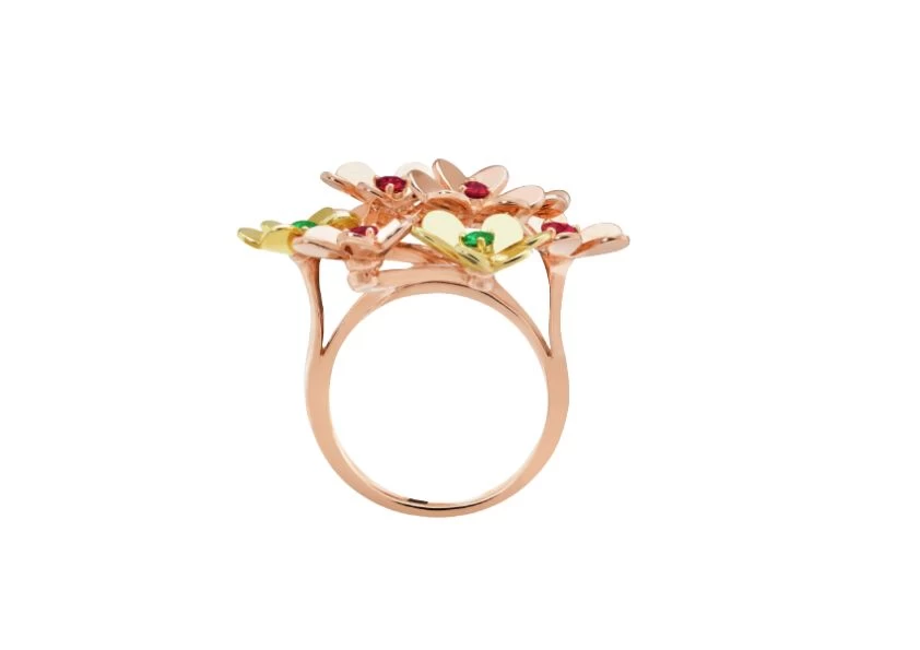 Introducing the exquisite Preloved: Frivole ring by Van Cleef & Arpels. This stunning piece features a captivating design of 8 delicate flowers, crafted with the utmost attention to detail. Made with 18K rose gold and 18K yellow gold, this ring exudes a timeless elegance that is sure to turn heads.