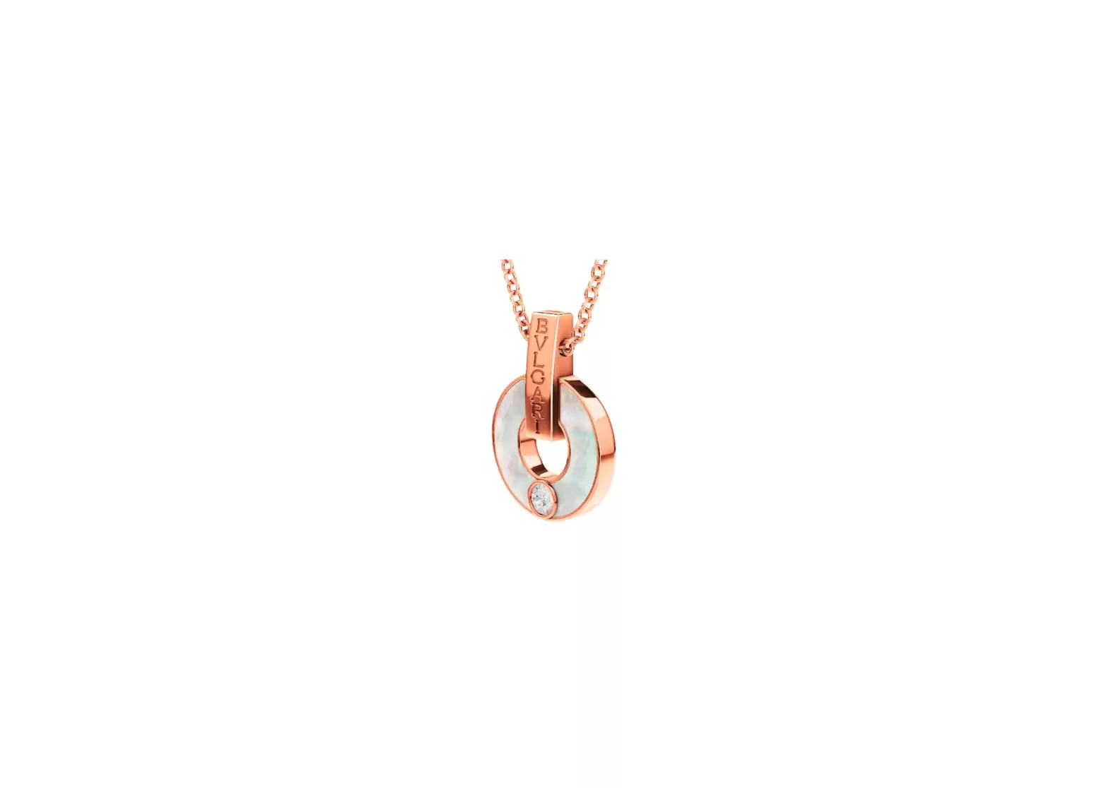Introducing the exquisite Bvlgari Openwork 18kt Rose Gold Necklace Set with Mother-of-Pearl Elements and a Round Brilliant-Cut Diamond. This remarkable piece is a testament to the brand's rich Roman heritage, effortlessly blending tradition with a modern twist.