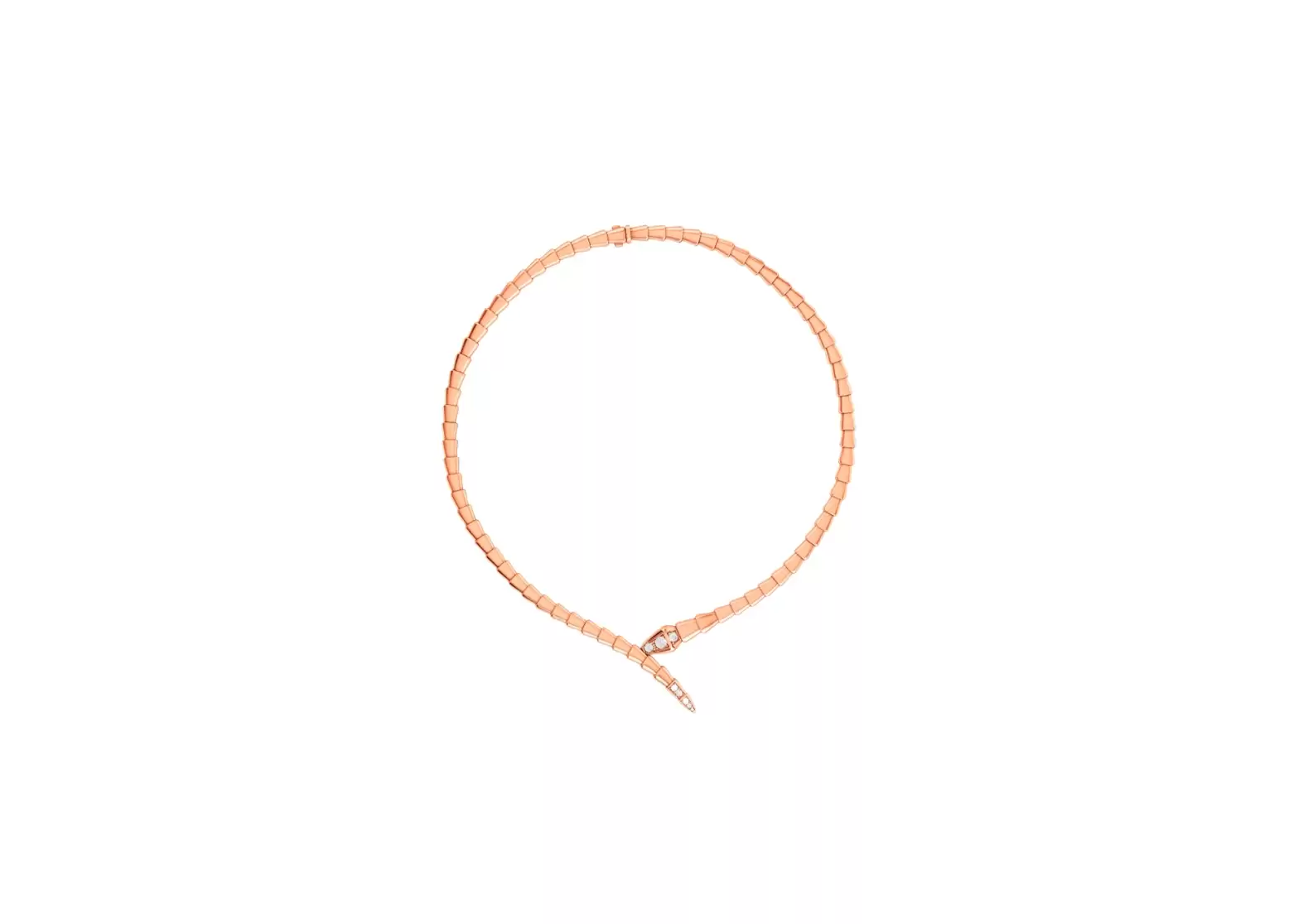 Experience the epitome of modern luxury with the Serpenti Viper necklace in 18 kt rose gold with demi-pavé diamonds.