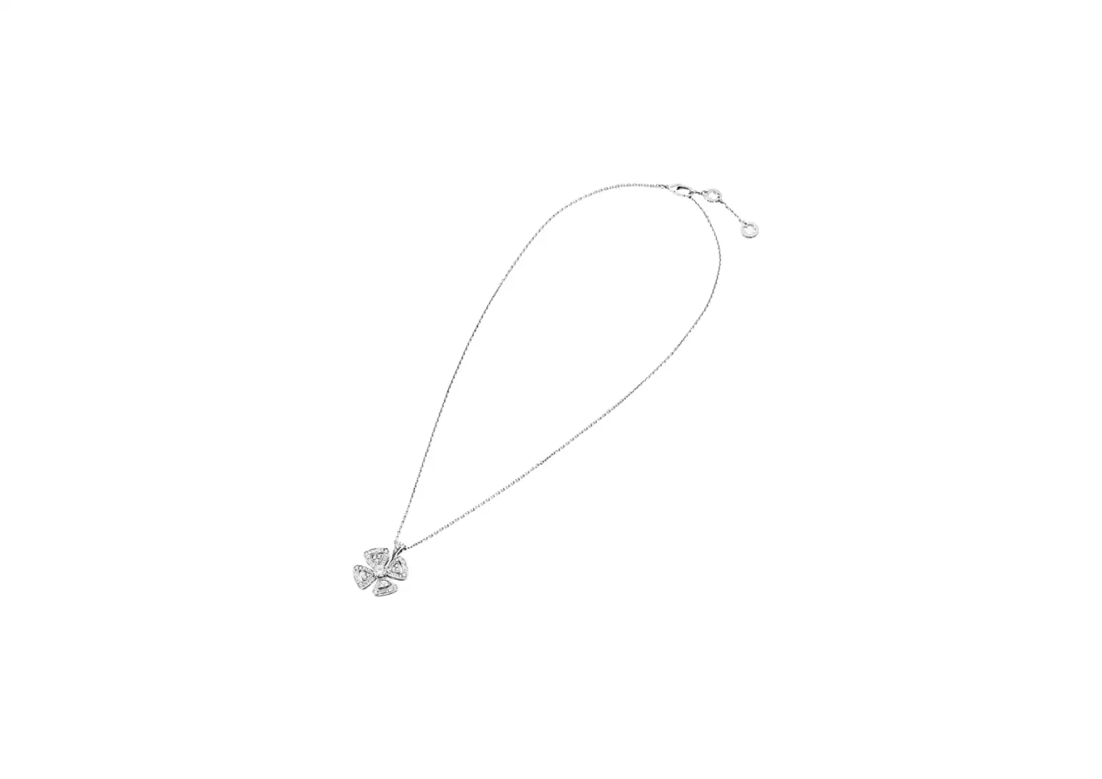 Crafted with meticulous attention to detail, the Fiorever necklace showcases a central diamond that radiates with unparalleled brilliance. Embraced by four exquisite white gold open-worked petals, adorned with shimmering pavé diamonds, this necklace is a true testament to Bvlgari's exceptional craftsmanship.