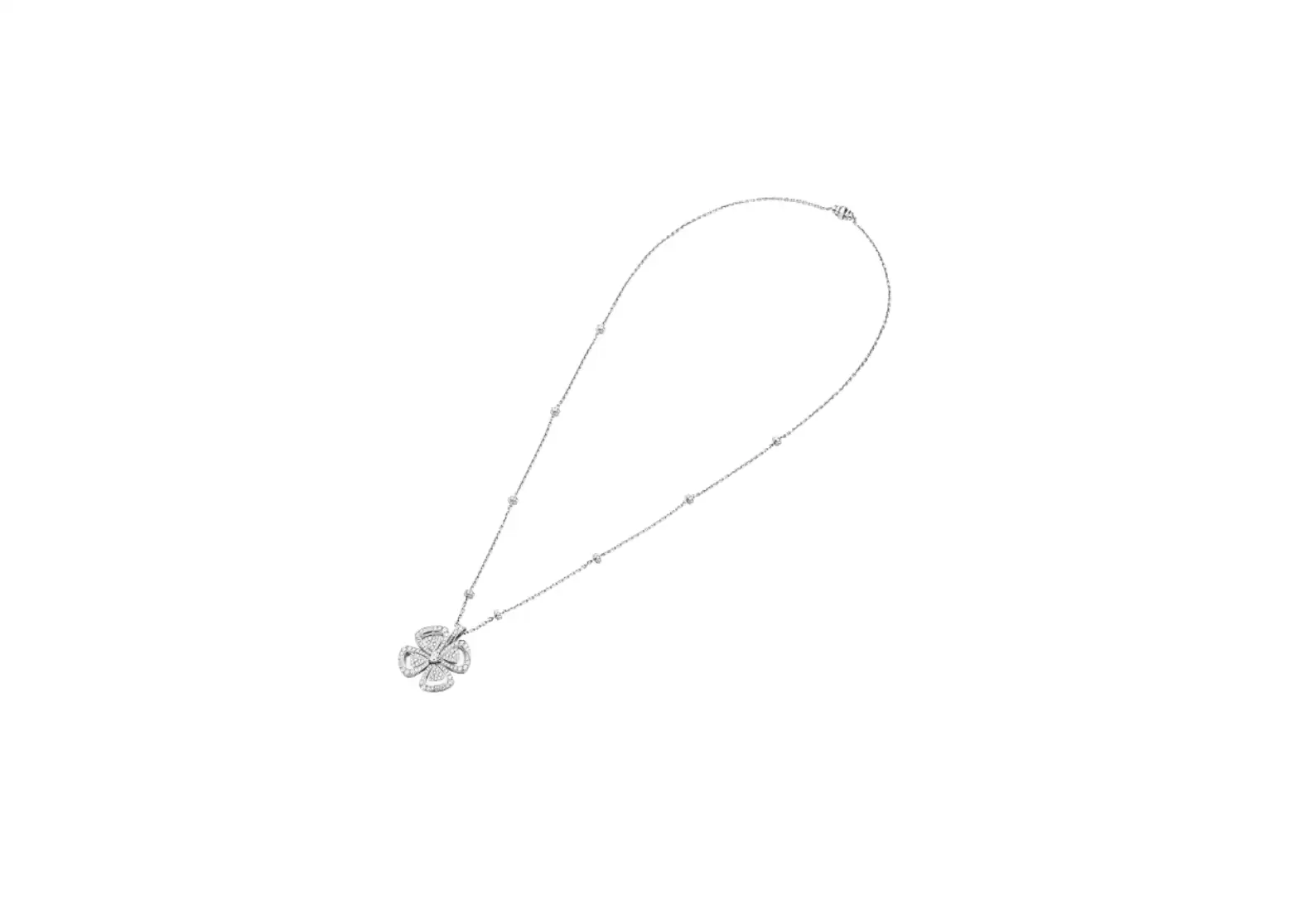 Introducing the Fiorever 18 kt white gold necklace, a true masterpiece that embodies the essence of eternal beauty. Inspired by the enchanting allure of the Eternal City, this exquisite piece draws its inspiration from the captivating four-petal flower, a symbol of pure happiness and joy cherished by the Romans.