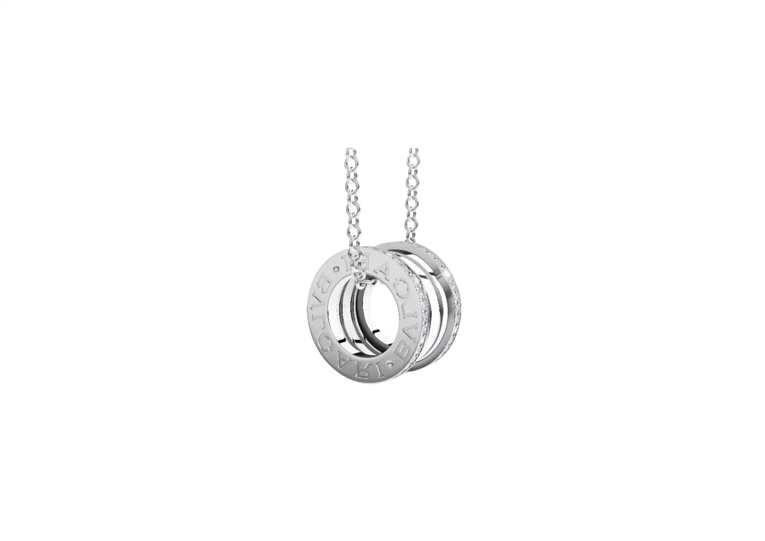 Introducing the Bvlgari Zero1 necklace with 18 kt white gold chain and 18 kt white gold round pendant set. Drawing its inspiration from the iconic Colosseum, this necklace is a testament to Bulgari's unparalleled creativity and innovative approach to jewellery design.