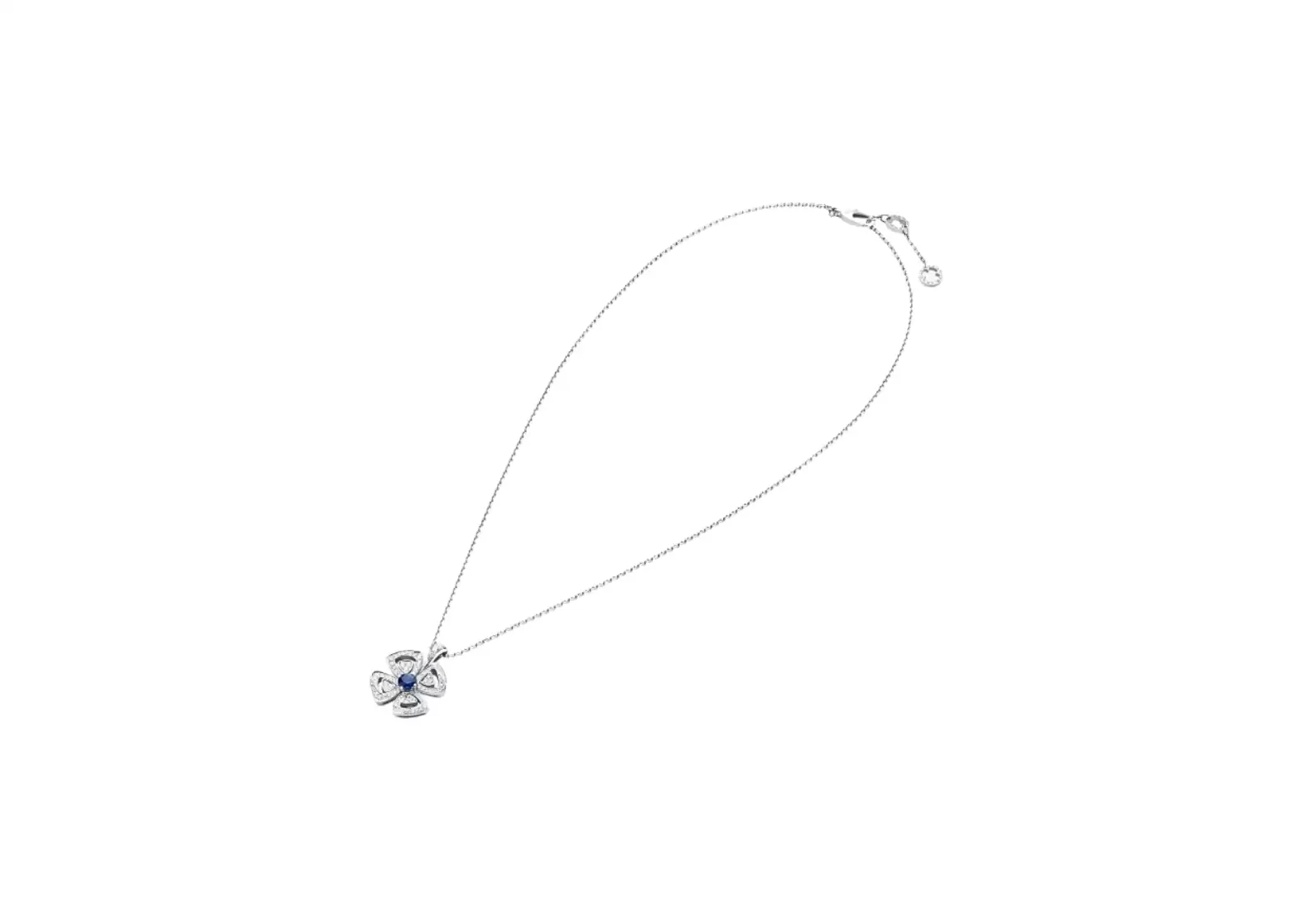 Introducing the Fiorever 18 kt white gold pendant necklace, a true marvel that will captivate your heart and elevate your style. Inspired by the timeless beauty of the Eternal City, this exquisite piece draws inspiration from the enchanting four-petal flower adored by the Romans as a symbol of pure happiness and unending joy.