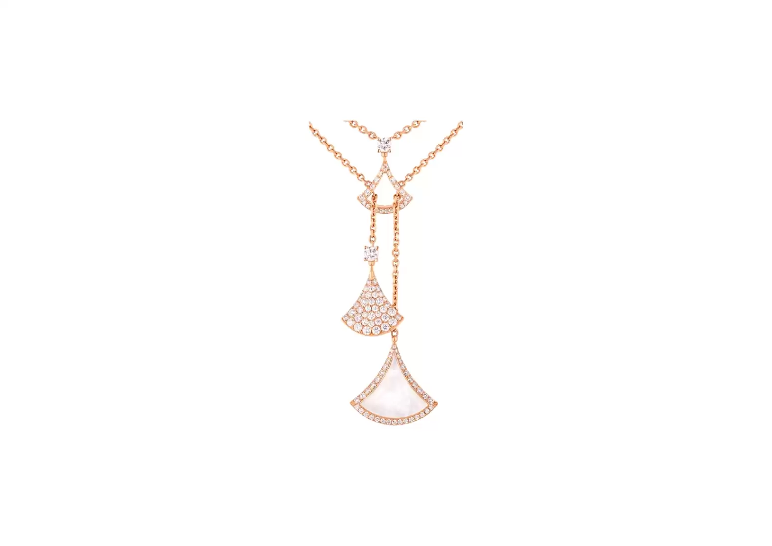 Inspired by the allure of divas and their captivating charm, the Divas`Dream necklace features three exquisite fan-shaped motifs. Each motif is meticulously crafted to perfection, showcasing the brand's commitment to exceptional craftsmanship.