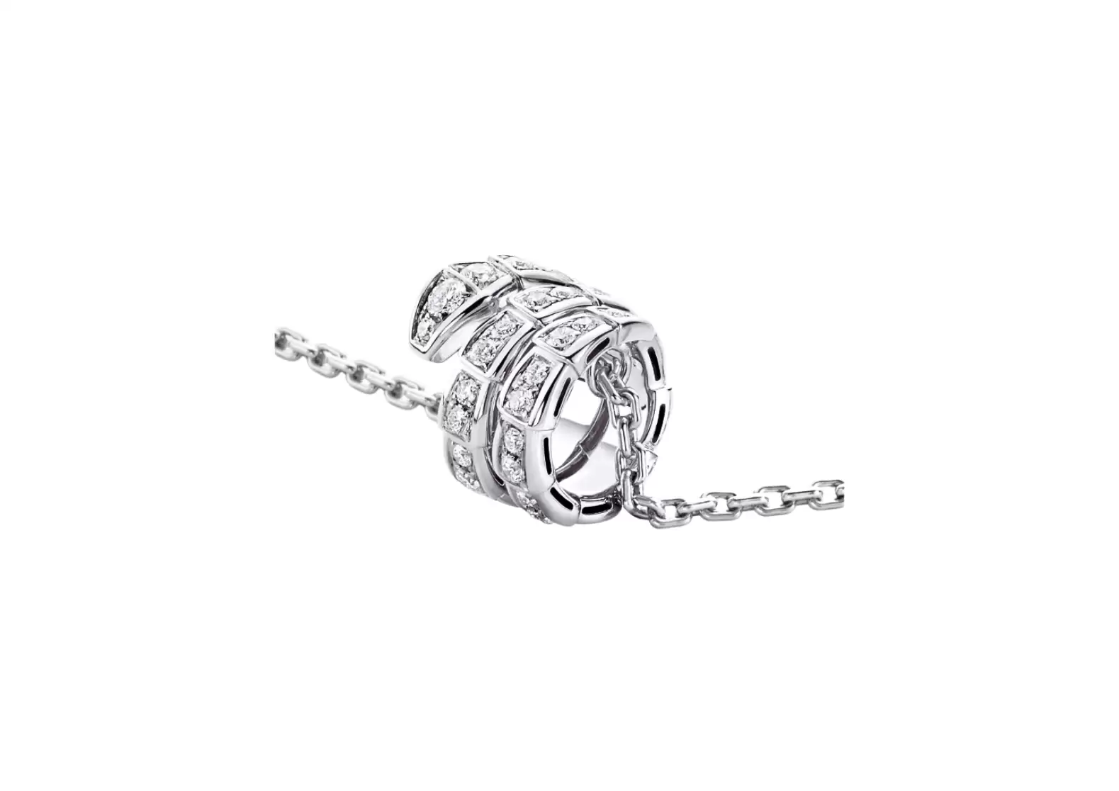 Introducing the Serpenti Viper pendant necklace in 18 kt white gold, a true masterpiece that embodies the essence of Bvlgari's timeless glamour and irresistible allure. Prepare to be captivated by its ultra-modern interpretation of the iconic serpent motif, as it effortlessly combines innovation and sophistication.