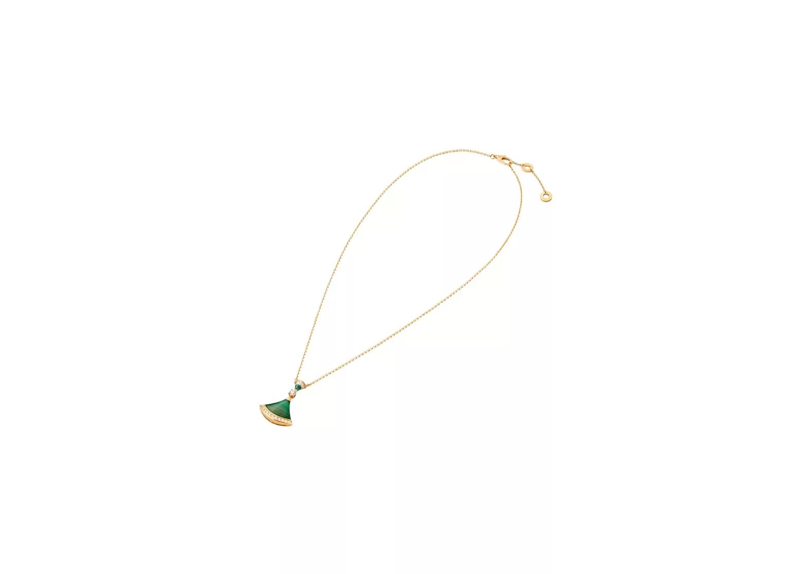 Inspired by the timeless beauty of the Roman Caracalla Baths, the necklace's fan-shaped motif reflects Bvlgari's deep connection with the Eternal City. Its modern design and sophisticated gemstone combinations make it a true masterpiece of craftsmanship.