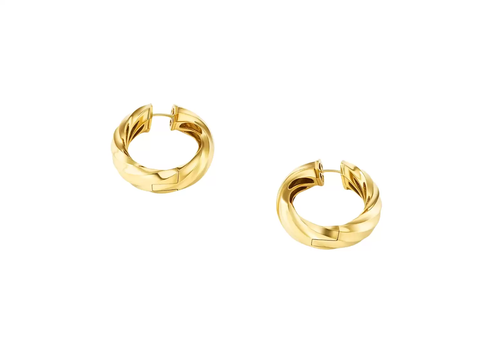 Indulge in the allure of these 18K yellow gold hoop earrings and experience the perfect blend of timeless elegance and contemporary flair. Elevate your jewelry collection with the Preloved: Cable Edge® Hoop Earrings and let them become your signature accessory, radiating confidence and sophistication wherever you go.