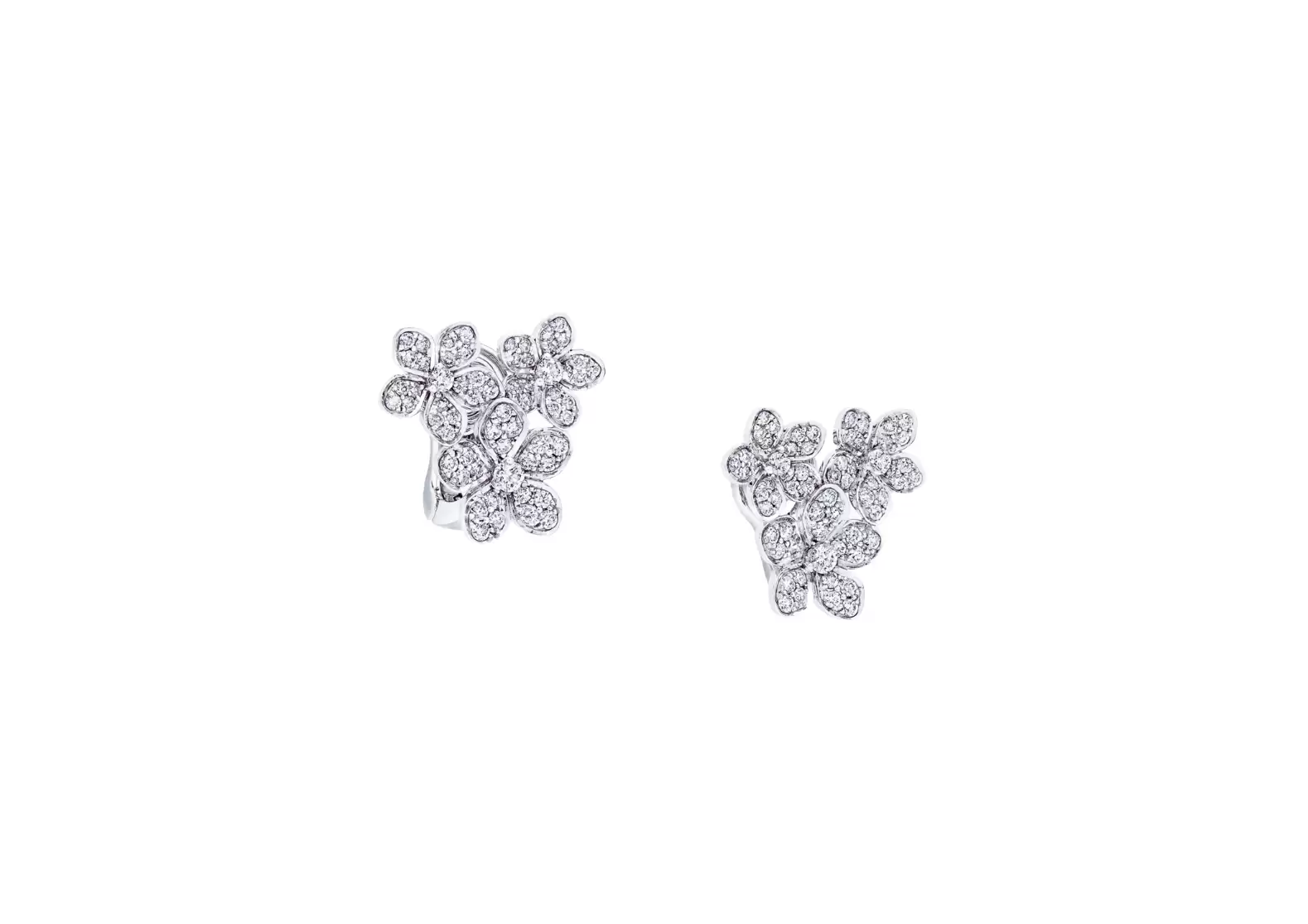 Introducing Preloved: Wild Flower Diamond Cluster Stud Earrings in White Gold | RGE1665. These exquisite earrings are a true celebration of nature's beauty, adorned with a cluster of diamond flowers that flourish with rare abundance. Each petal is uniquely realized and meticulously placed, creating a stunning display that uplifts and captivates.