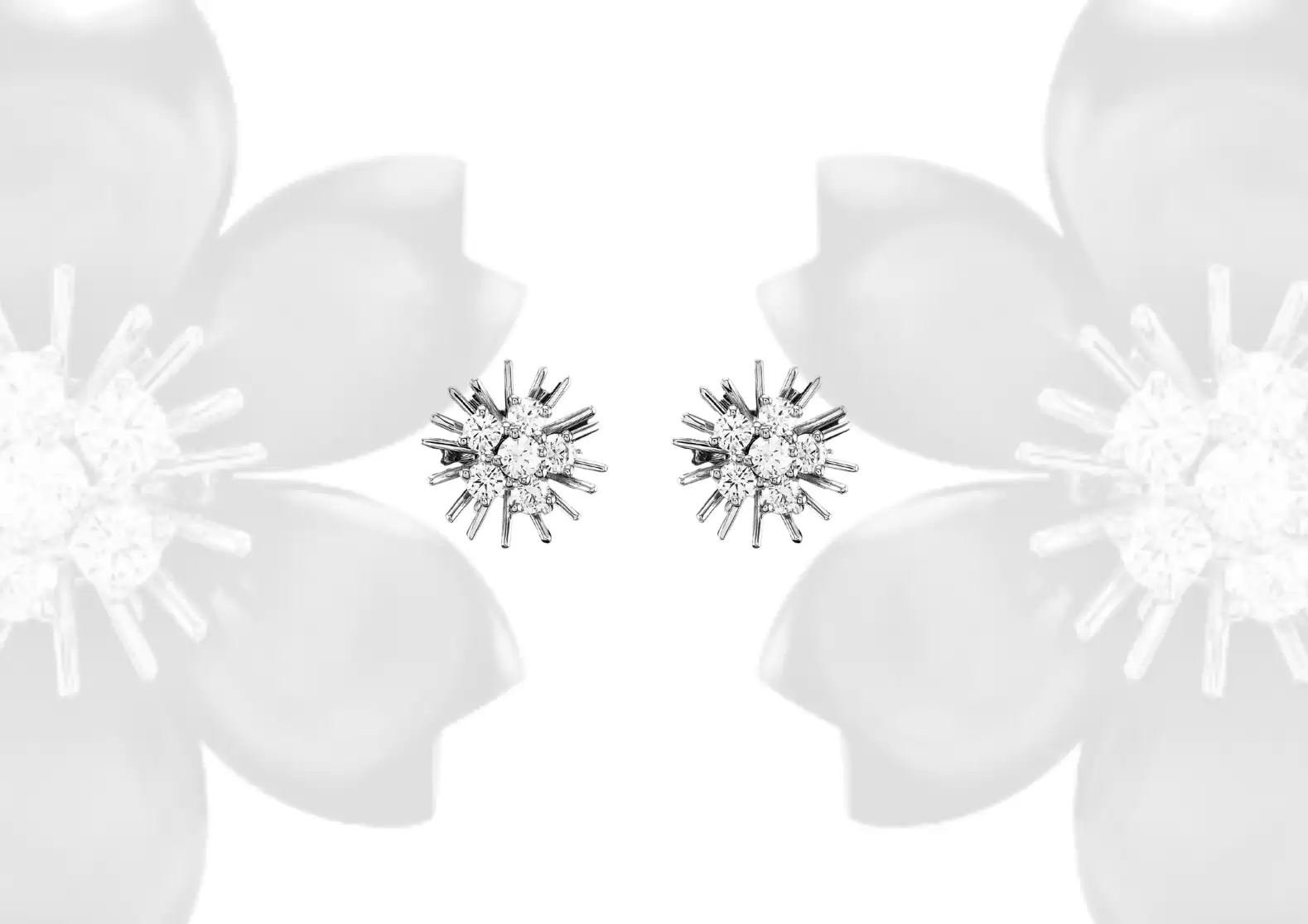 Introducing the Preloved: Rose de Noël earrings, small model. These exquisite earrings are crafted with the finest materials, including rhodium plated 18K white gold and stunning gray mother-of-pearl.