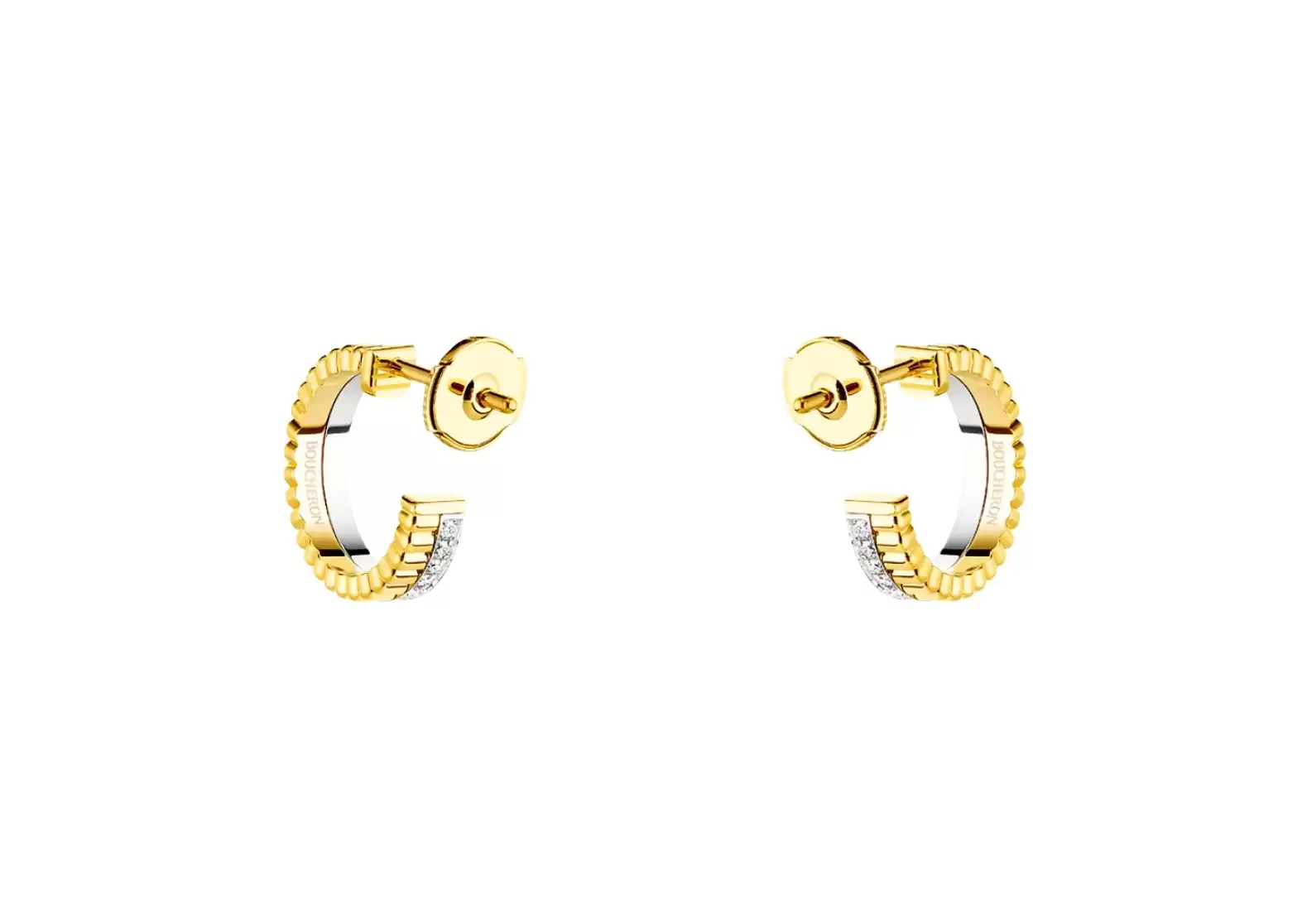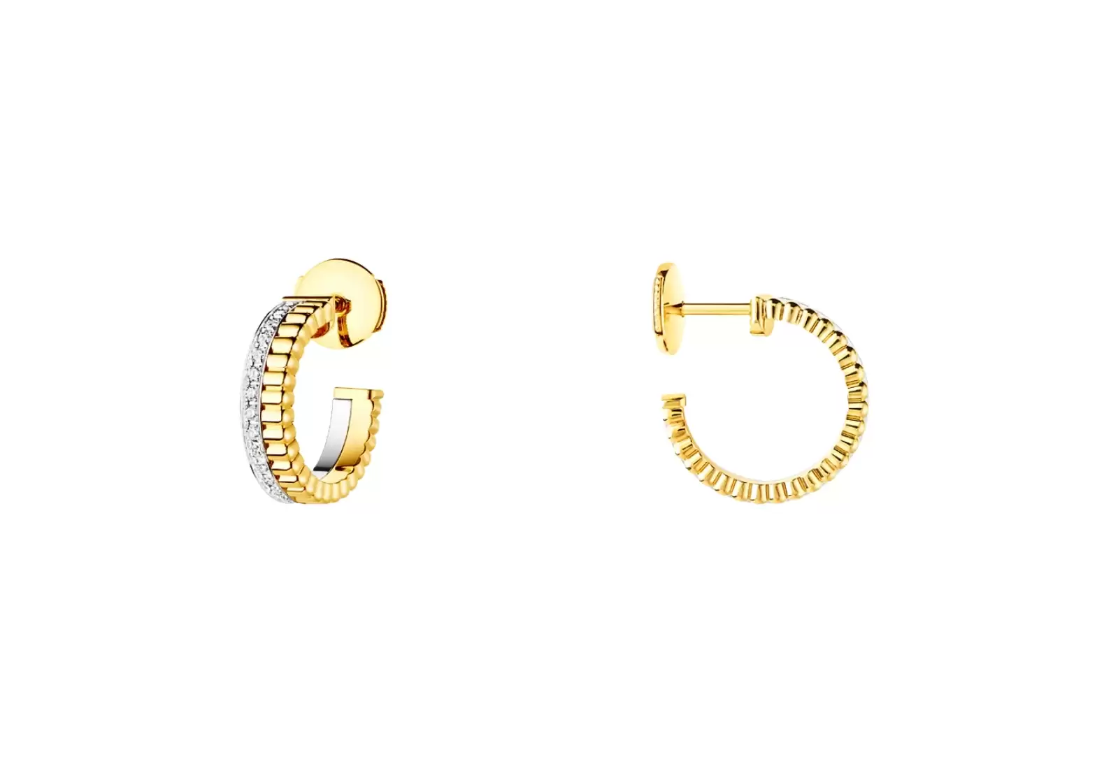 To further enhance their allure, these hoop earrings are crafted with a combination of yellow and white gold, totaling an impressive 18 carats. The contrasting colors of the gold add depth and dimension to the overall design, creating a truly unique and luxurious piece of jewelry.