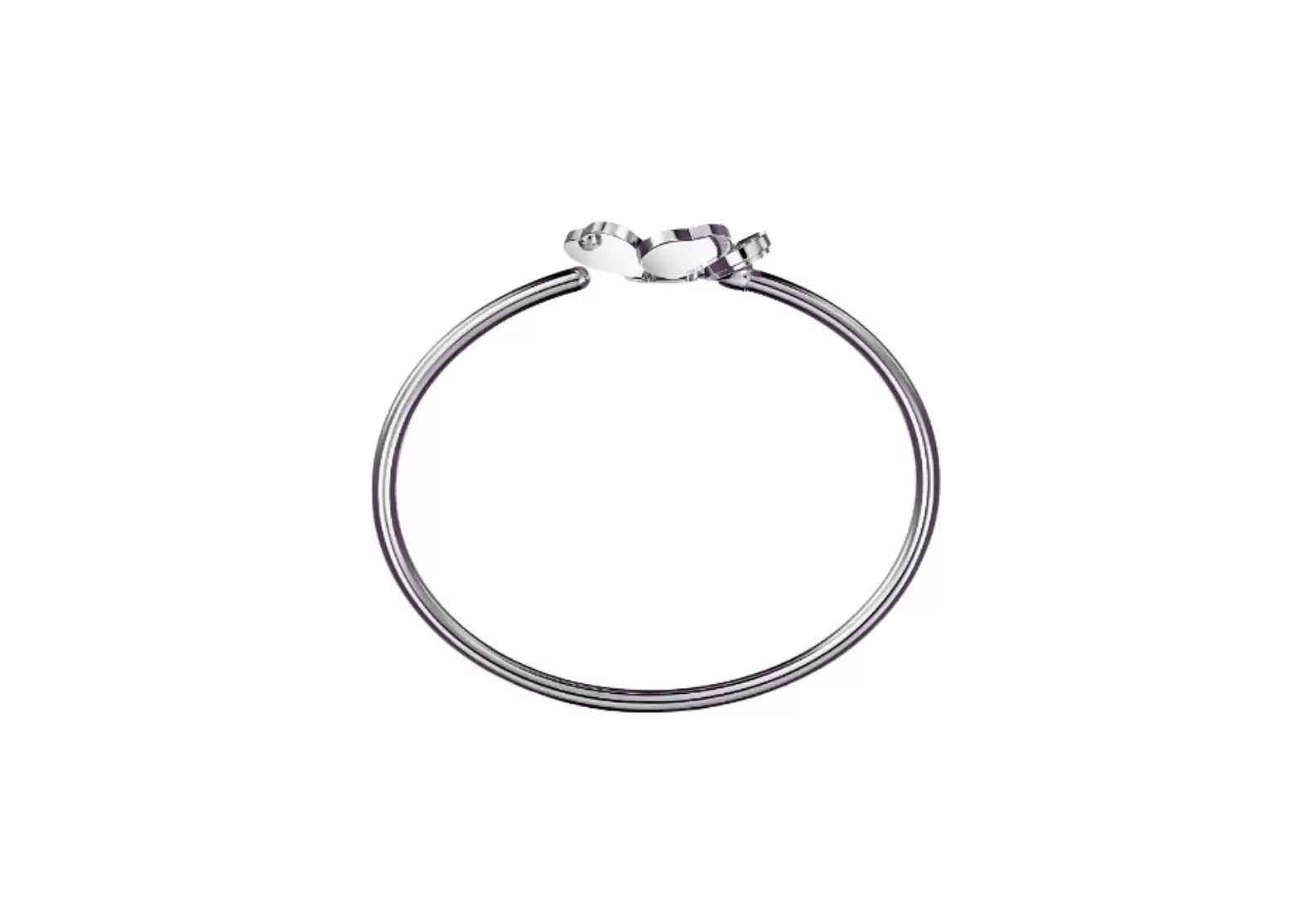 The Happy Hearts Flowers bangle showcases a stunning arrangement of five delicate hearts surrounding a dancing diamond, creating the illusion of delicate and feminine flowers. Crafted with 18-carat white gold, this bangle exudes luxury and sophistication.