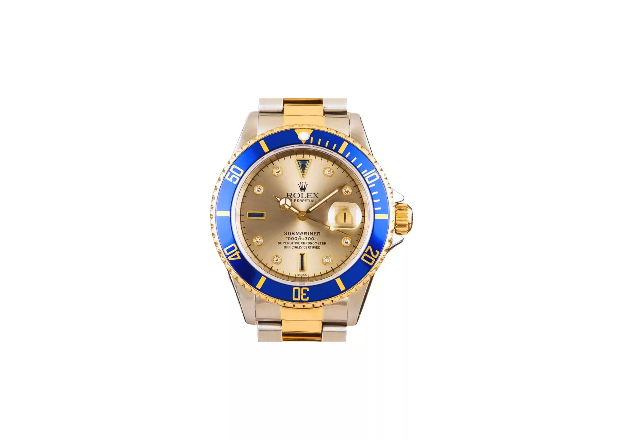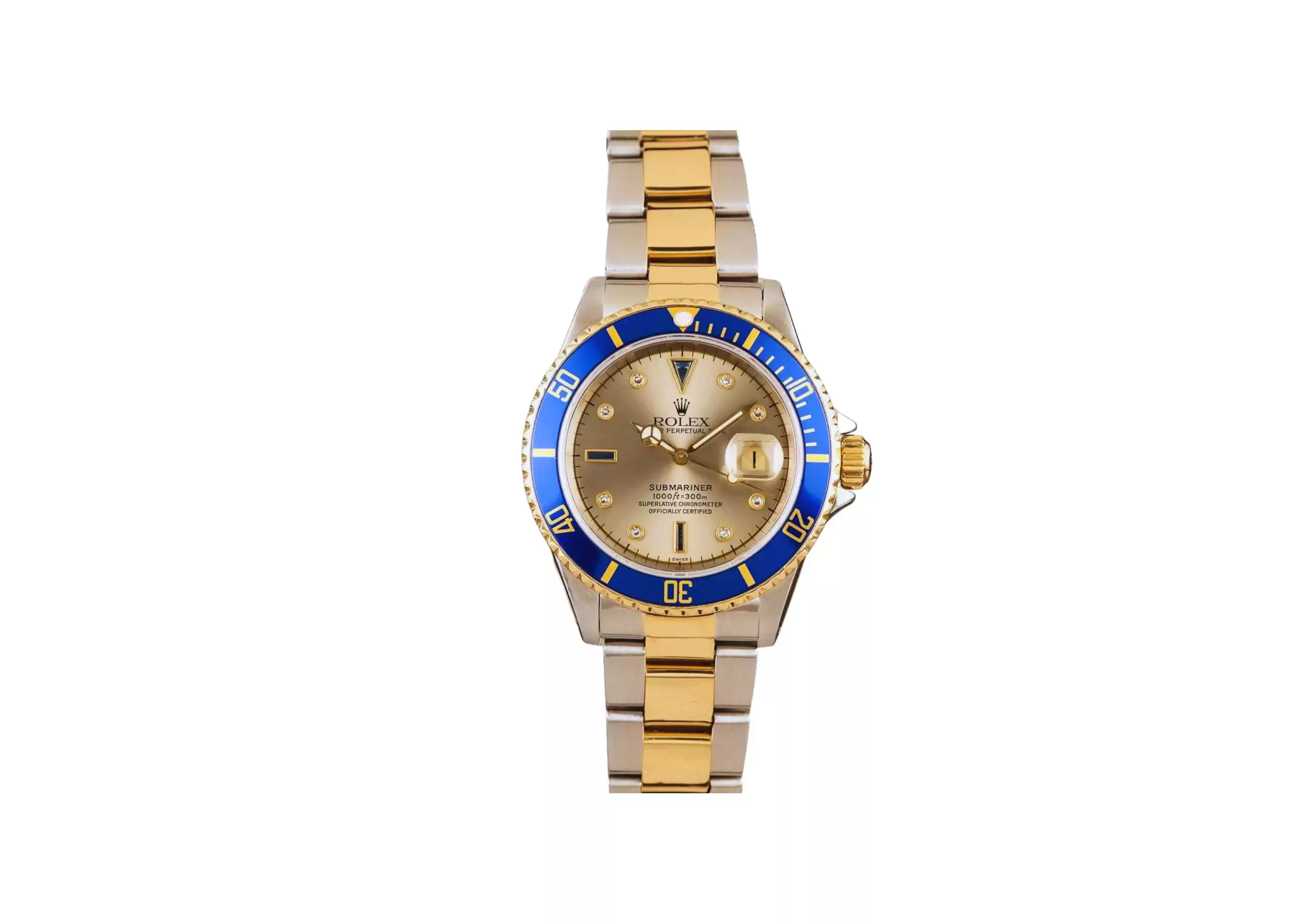 DescriptionIntroducing the exquisite Rolex Oyster Perpetual Submariner Date 16613 Mens Watch, a true testament to the brand's unrivaled craftsmanship and timeless elegance. Encased within a 40mm stainless steel case, this timepiece exudes a refined allure that is sure to captivate discerning gentlemen. The unidirectional rotating 18K yellow gold bezel, adorned with a striking blue insert, adds a touch of sophistication to the watch's design. Complementing this aesthetic is the champagne dial, featuring the iconic Mercedes gold luminous hands that effortlessly glide across its surface. The dial showcases original factory diamond set hour markers, further accentuated by three sapphire hour markers at the 6, 9, and 12 o'clock positions, creating a harmonious fusion of luxury and functionality. With minute markers adorning the outer dial and a convenient date display positioned at the 3 o'clock mark, this timepiece ensures utmost precision and practicality. The stainless steel and 18K yellow gold Oyster bracelet, secured with a stainless steel fold-over clasp with safety, not only enhances the watch's overall allure but also guarantees a comfortable fit for wrists up to 7 inches in circumference. Powered by an automatic self-winding movement, this Rolex Submariner Date 16613 Serti Dial Mens Watch exemplifies the brand's commitment to precision and reliability. Crafted in 1991, this timepiece carries with it a rich heritage and timeless appeal that will endure for generations to come. Indulge in the epitome of luxury and sophistication with the Rolex Oyster Perpetual Submariner Date 16613 Mens Watch, a true masterpiece that seamlessly blends style and functionality. |