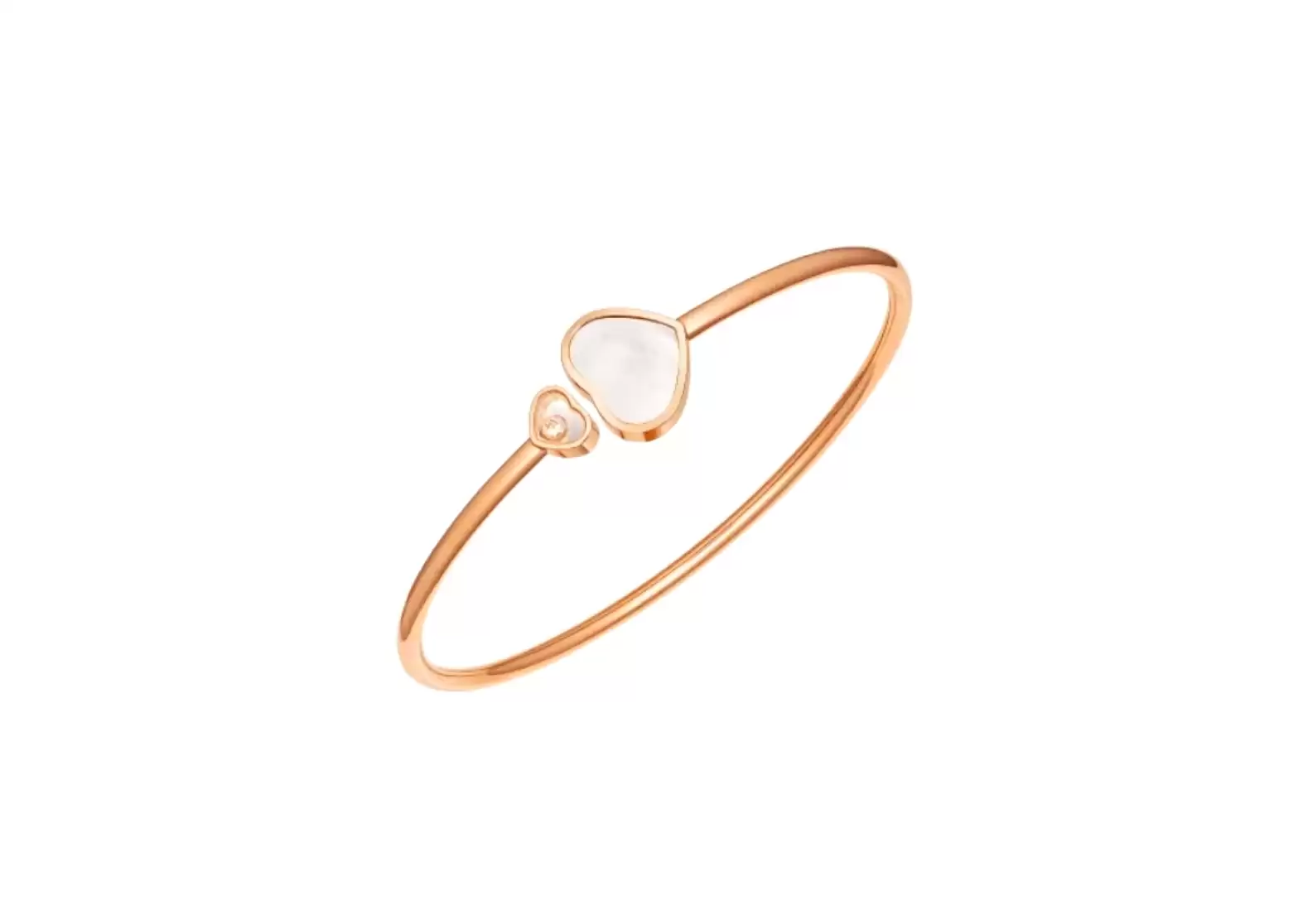 Introducing the Preloved: Happy Hearts Bangle, a stunning piece of jewelry that embodies the spirit of generosity and kindness. Crafted by Chopard, the Big-Hearted Maison, this bangle is a perfect combination of Chopard's heart talisman and their iconic dancing diamonds.