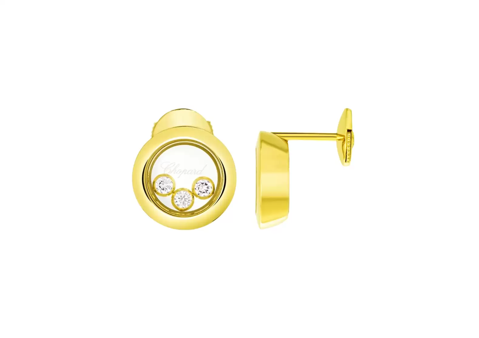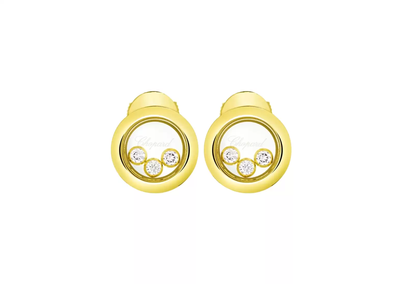 Introducing Preloved: Happy Diamonds Icons Earrings, Ethical Yellow Gold, Diamonds - a truly unique and playful piece of jewelry. These earrings feature the mesmerizing Happy Diamonds, which are delicately suspended between two sapphire crystals. This design allows the diamonds to move freely, unleashing their captivating sparkle with every motion.