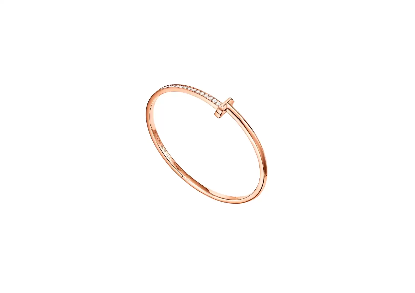 At the center of this hinged bangle lies a captivating "T" motif, which not only represents the iconic Tiffany brand but also embodies strength and resilience. The intricate design showcases scintillating diamonds, adding a touch of glamour and sophistication to this already mesmerizing piece.