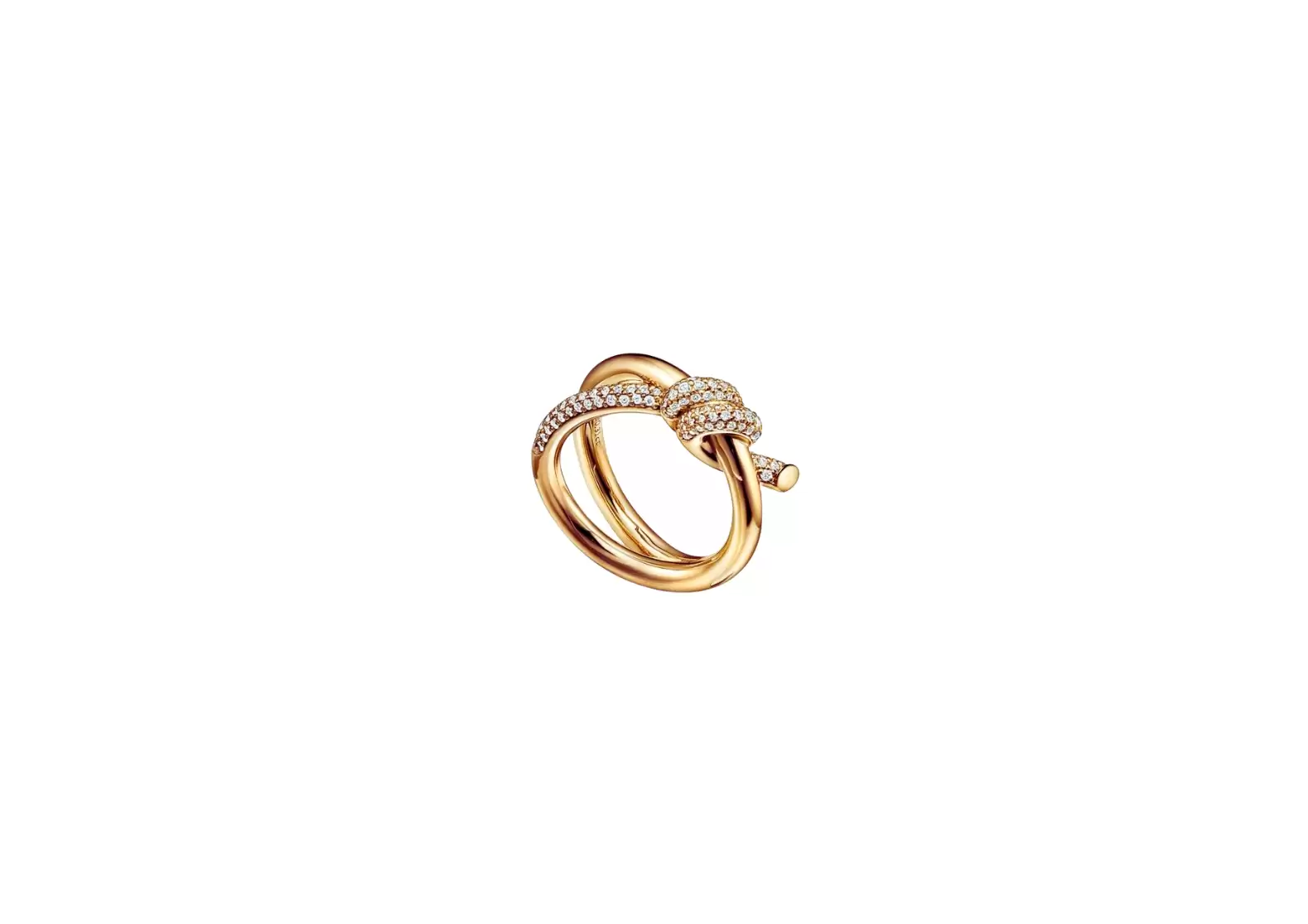 Introducing the Preloved: Tiffany Knot Double Row Ring in Yellow Gold with Diamonds | 69346626. This exquisite piece of jewelry embodies the profound significance of human connections through its entwined ends, a signature motif of Tiffany Knot. Meticulously crafted with a perfect blend of strength and elegance, each Tiffany Knot design showcases the intricate artistry of our skilled craftsmen.