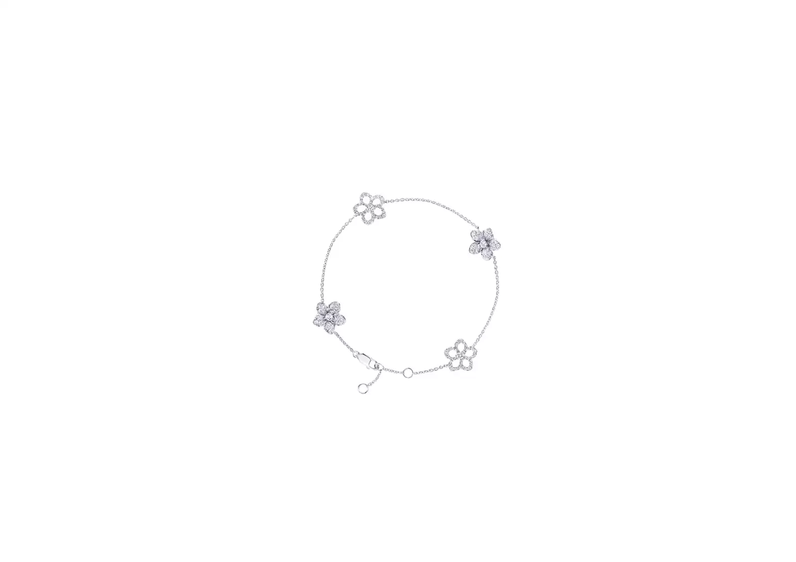 Introducing the Preloved: Wild Flower Pavé Diamond Bracelet in White Gold, a masterpiece that encapsulates the beauty of nature in its most captivating form. This exquisite bracelet features four diamond flowers, each meticulously crafted to perfection, showcasing a level of detail that is truly unparalleled.