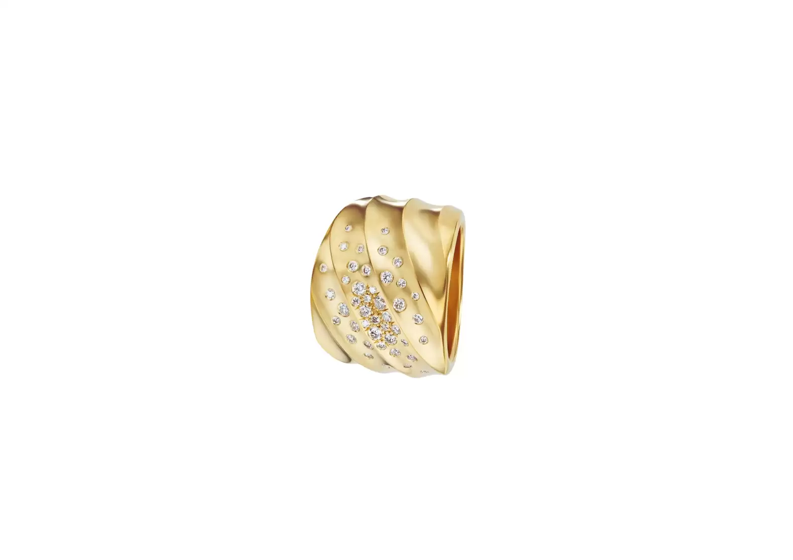Introducing the exquisite Preloved: Cable Edge® Saddle Ring 18K Yellow Gold With Diamonds, 18.8mm. Crafted with utmost precision, this stunning ring is a true testament to elegance and sophistication.