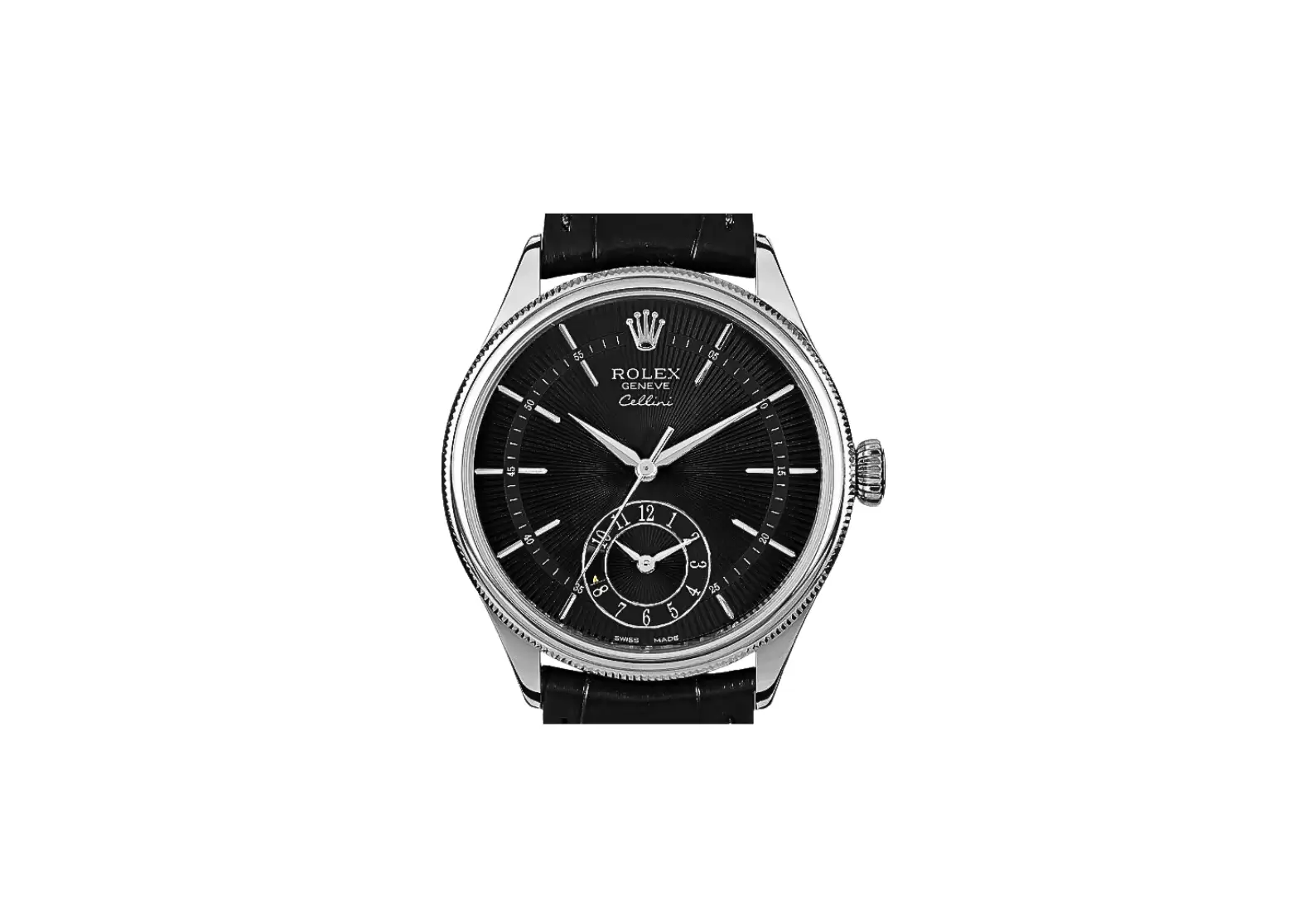 Introducing the Pre-owned Rolex Cellini Dual Time Black Dial 18k White Gold Men's Watch 50529-0007, a timepiece that epitomizes elegance and opulence. Crafted with meticulous attention to detail, this exquisite watch is a true testament to Rolex's commitment to quality.