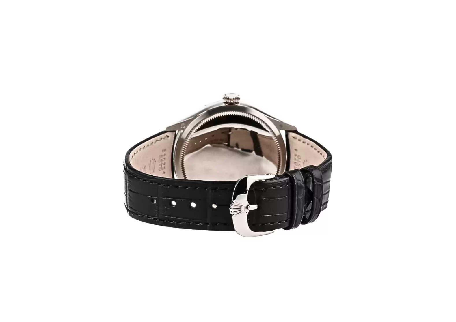 The 39mm 18k white gold case is a sight to behold, radiating a sense of sophistication and refinement. Its sleek black dial is adorned with index hour markers, adding a touch of classic charm to its overall design. The domed and fluted bezel further enhances its allure, creating a harmonious blend of style and functionality.