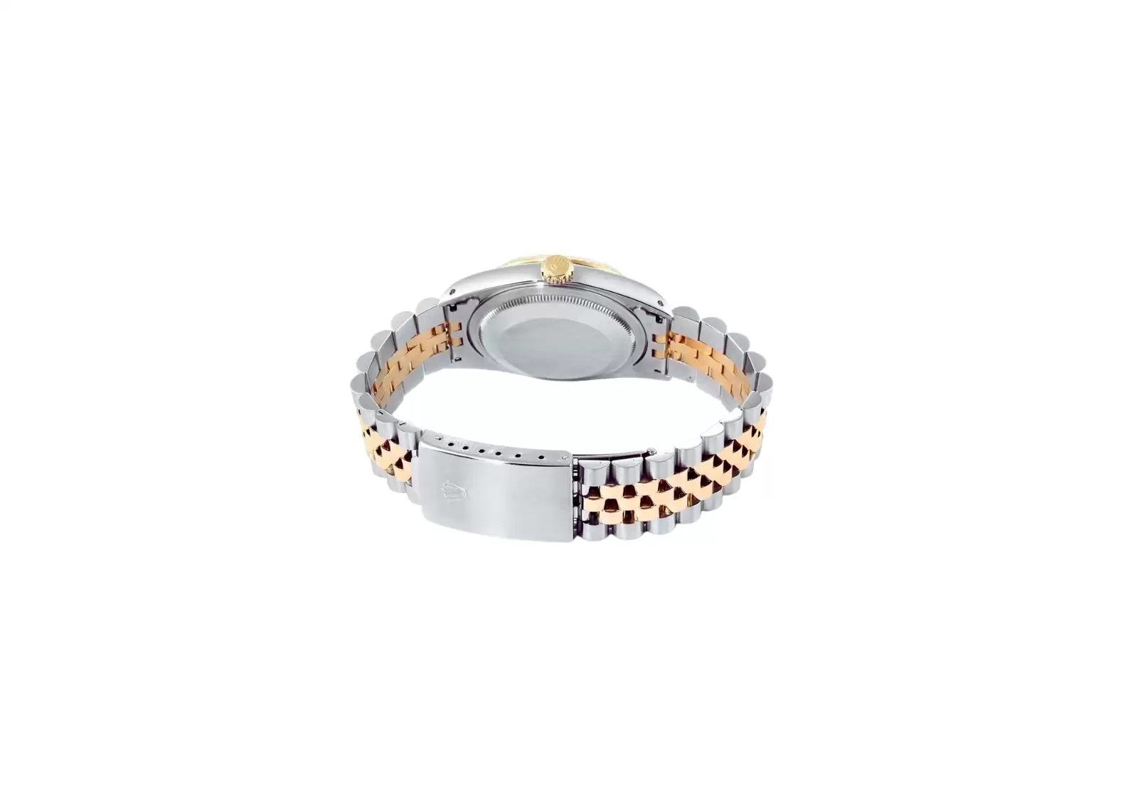 Crafted with meticulous attention to detail, this Rolex Datejust 36 16233 watch features a brushed with polished 904L Oystersteel stainless steel case, ensuring durability and longevity. The brushed 904L Oystersteel stainless steel with polished solid 18k yellow gold jubilee bracelet adds a touch of opulence to this already stunning piece.