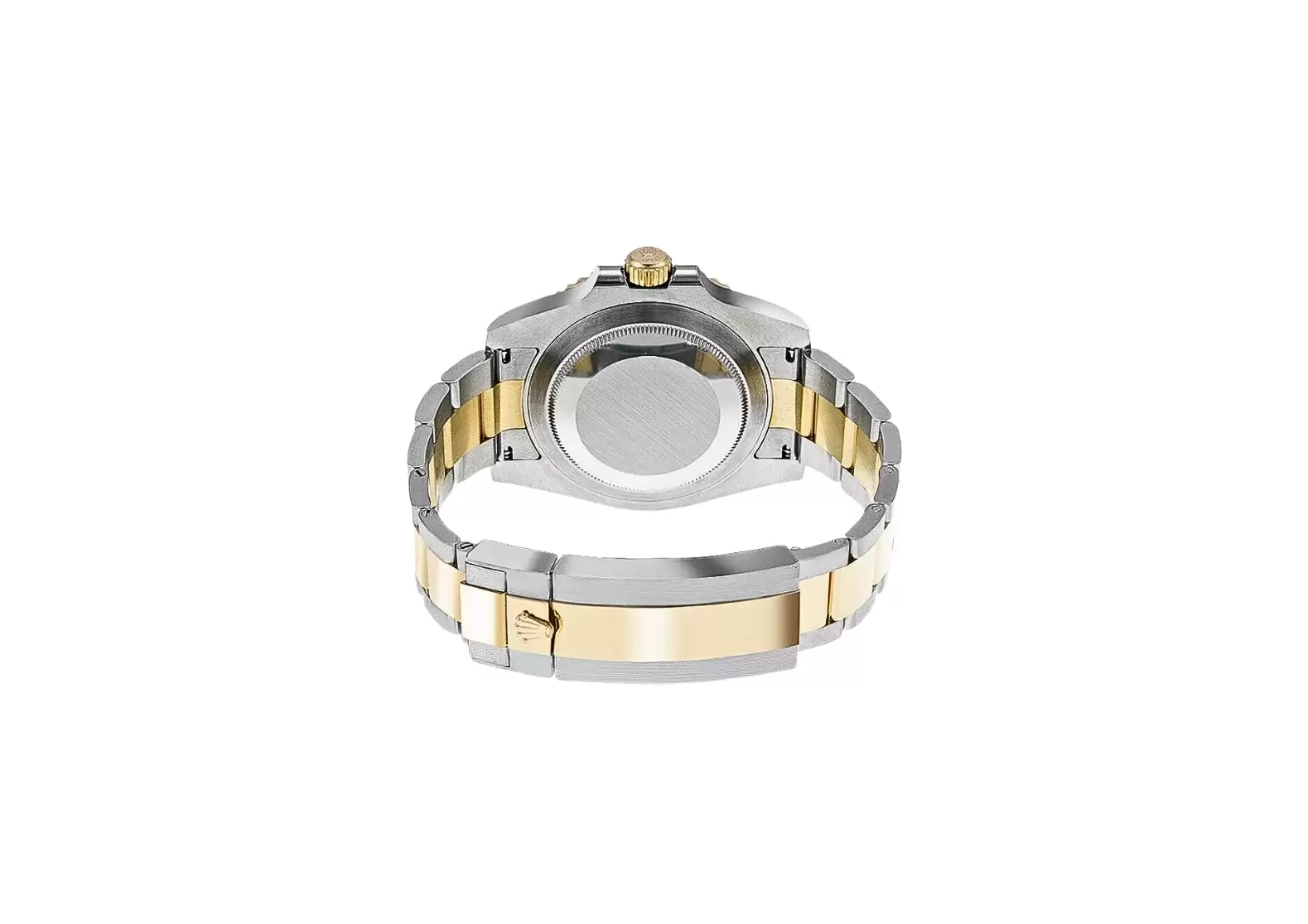 The solid 18k Rolesor yellow gold bezel with a blue Cerachrom ceramic bezel insert adds a touch of luxury and durability to this timepiece. The date feature is displayed at 3 o'clock, with a cyclops lens over the date for easy reading. The instantaneous date setting feature ensures accurate timekeeping.