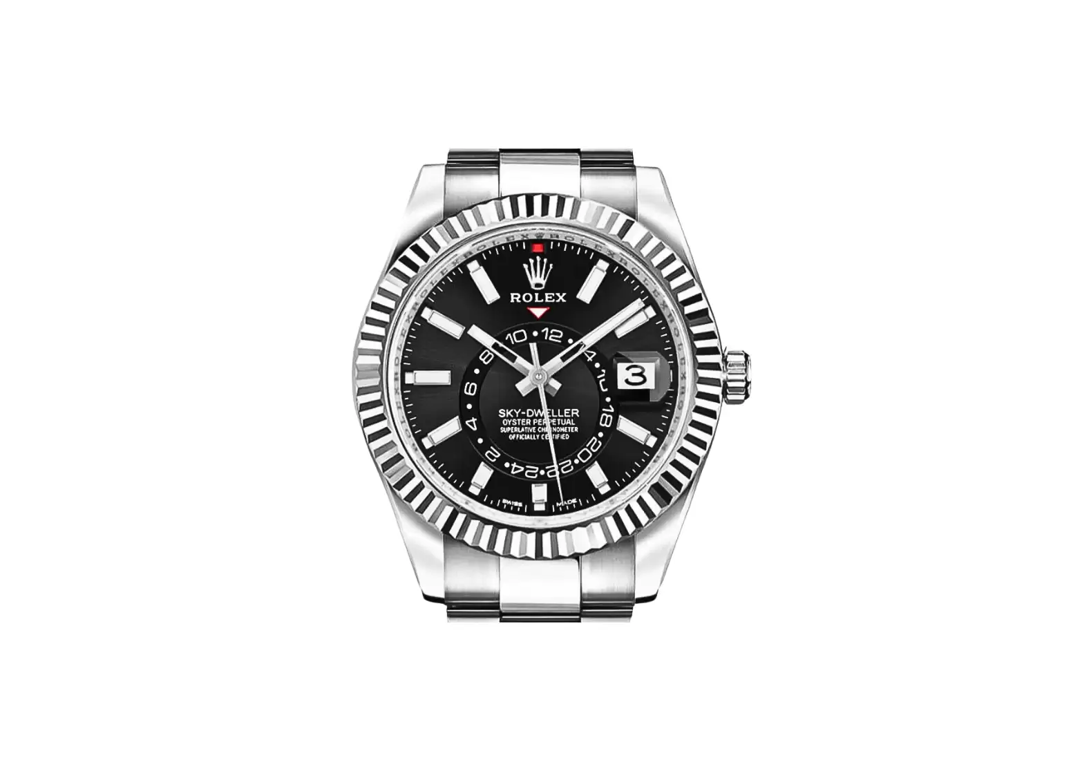 Introducing the Pre-owned Rolex Sky-Dweller White Gold Fluted Bezel Men's Luxury Watch 326934-0005. This exquisite timepiece boasts a range of impressive features that make it a must-have for any discerning watch enthusiast.
