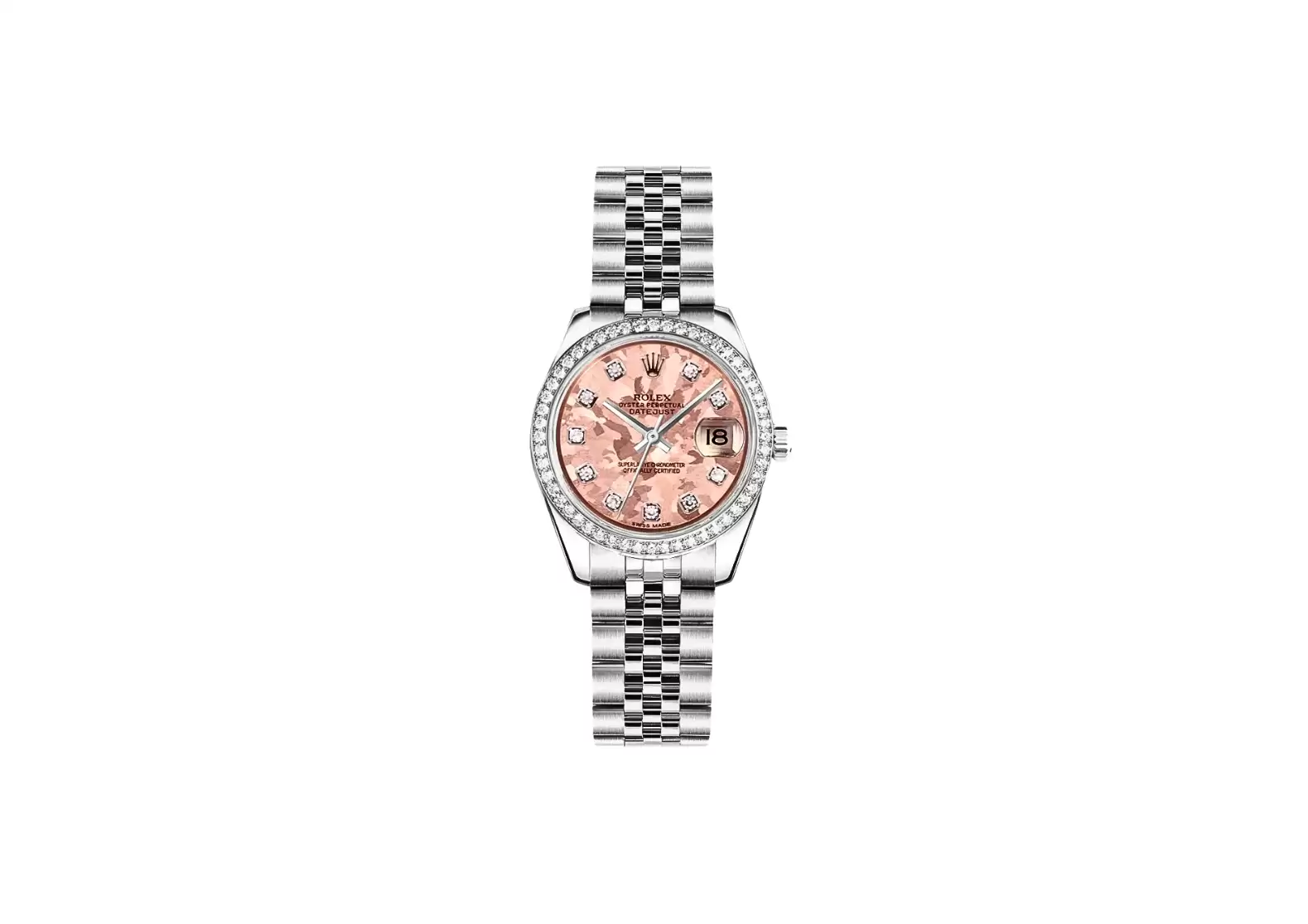 This watch comes with all the features you would expect from a Rolex. It is Swiss made and comes with manufacturer serial numbers, guaranteeing its authenticity and quality. The crystal gold pink dial is adorned with diamonds, adding a touch of glamour to your wrist. The diamond hour markers further enhance its beauty.