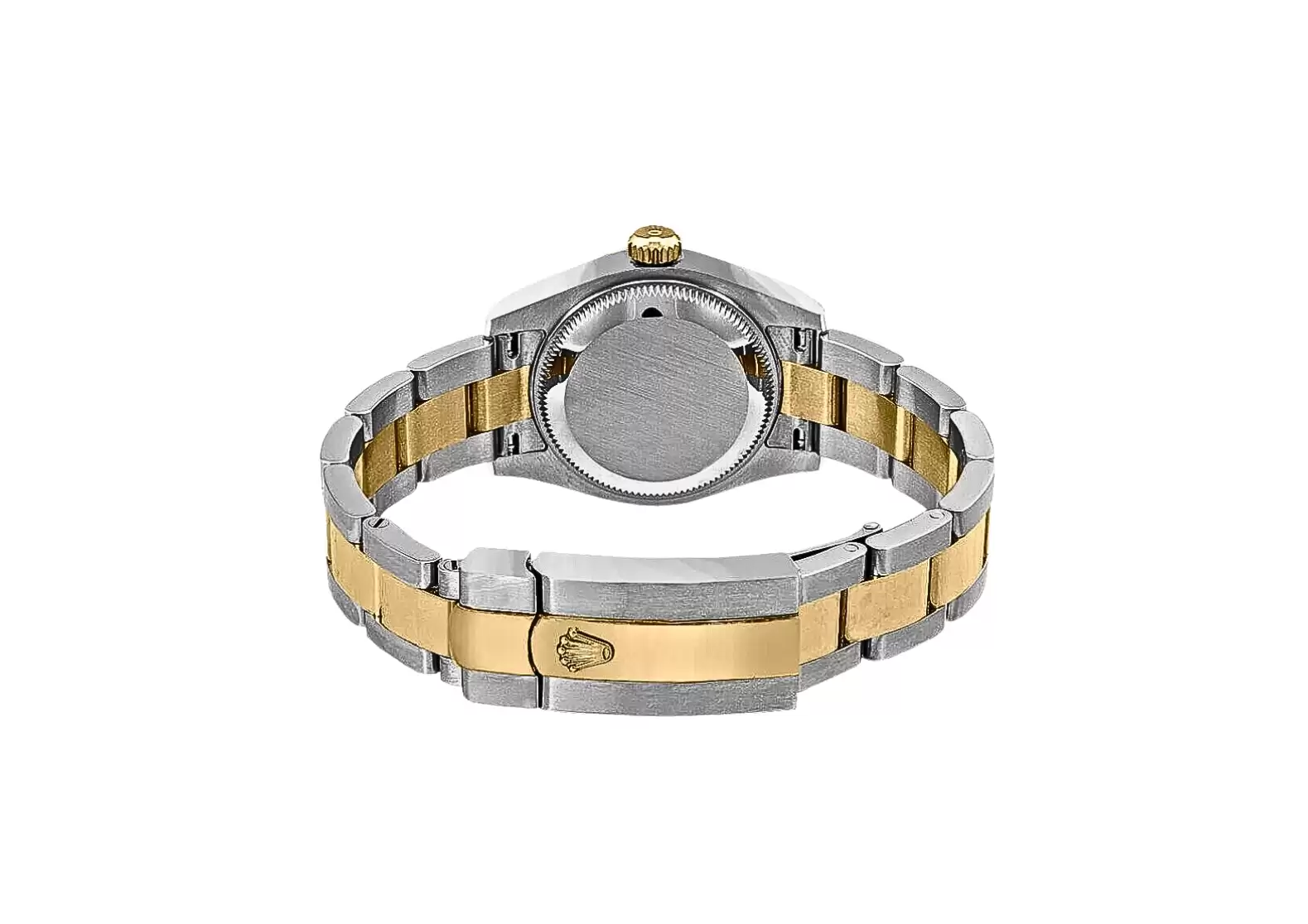 The polished 904L oyster steel stainless steel case and brushed 904L oyster steel stainless steel with polished solid 18k yellow gold oyster bracelet ensure durability and a luxurious feel. The scratch-resistant sapphire crystal protects the dial from any damage.
