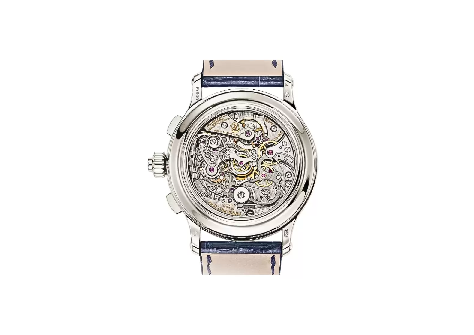 At the heart of this watch lies a fascinating movement with a classic architecture. It not only features trailblazing innovations but also showcases a redesigned rattrapante mechanism. The platinum case adds an elegant touch, complemented by a concave dial and satin-finished recesses on the flanks.