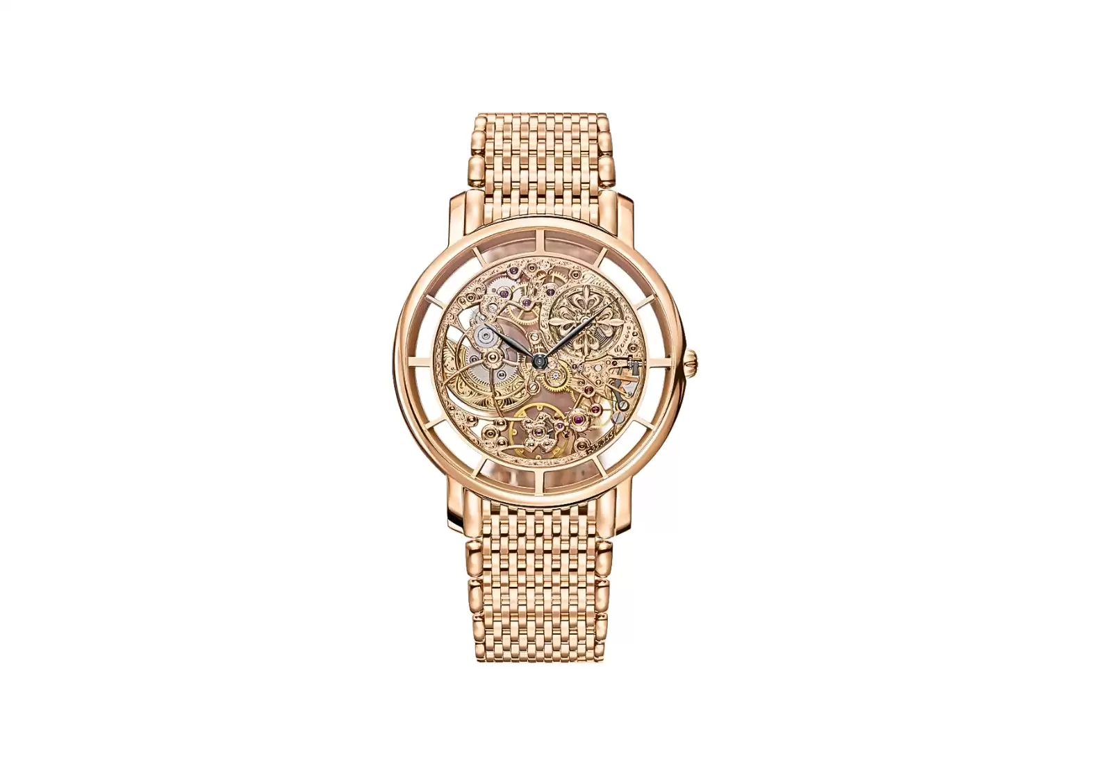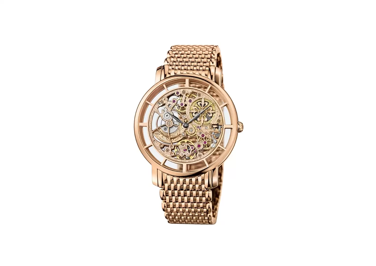 Encased in rose gold, this timepiece exudes sophistication and refinement. The skeleton movement is adorned with hand-engraved decoration, adding a touch of elegance to its already captivating design. The sapphire crystal case back offers a glimpse into the intricate movement, allowing you to appreciate the beauty from every angle. With a water resistance of up to 30 meters, this watch seamlessly combines style with practicality.