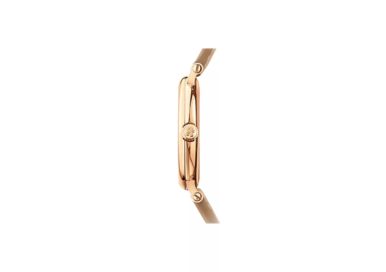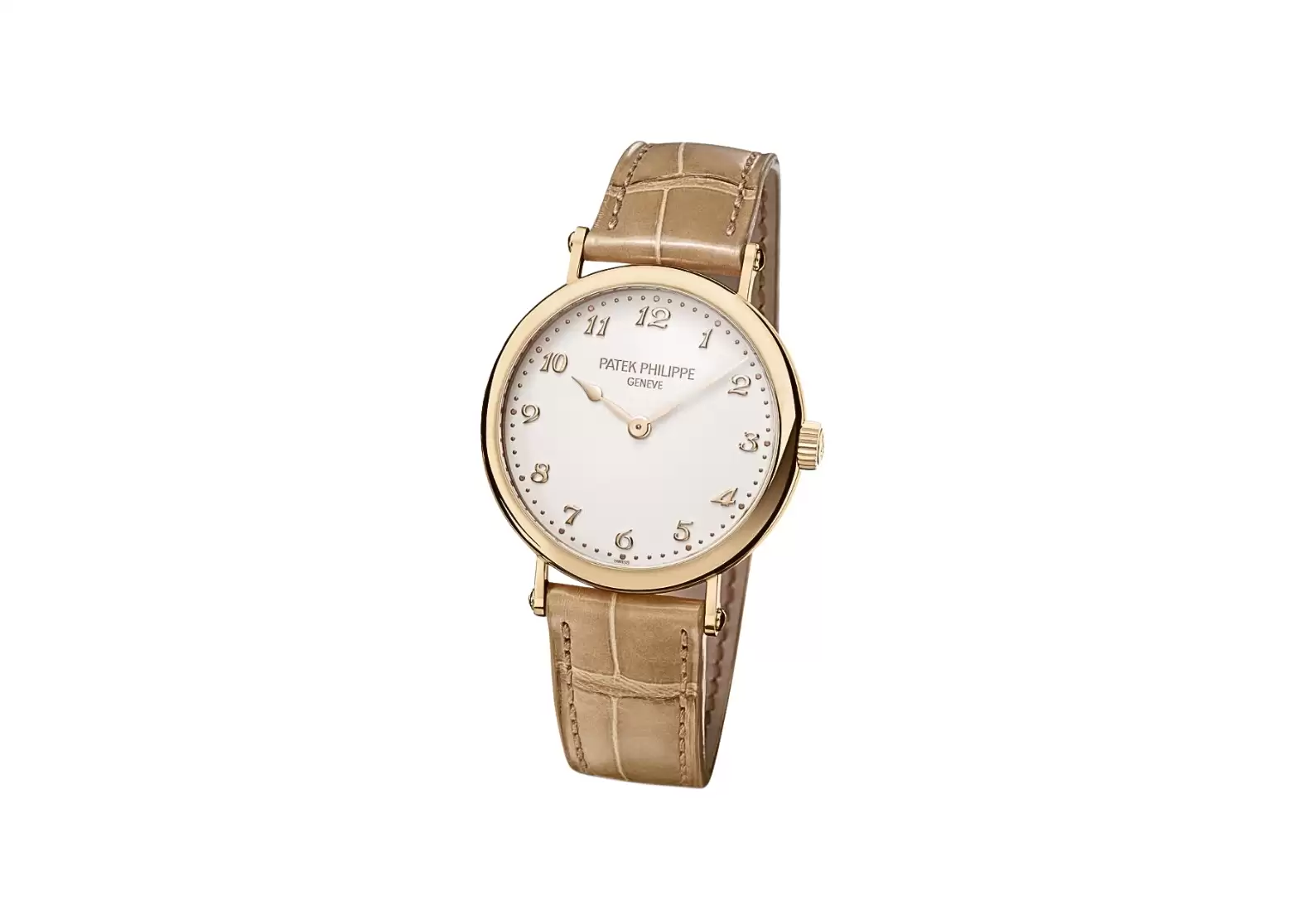The strap of the Patek Philippe 7200R-001 is crafted from alligator leather, featuring square scales and a hand-stitched design. The matt pearly beige color adds a subtle touch of sophistication. Securing the watch is a prong buckle, ensuring a secure and comfortable fit on the wrist.