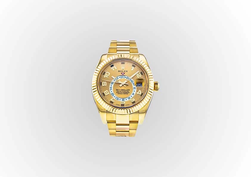 Discover the epitome of luxury and precision with the Rolex Sky-Dweller 326938. This exquisite timepiece exudes opulence and sophistication, making it a coveted addition to any watch collection. The watch comes complete with its original box and papers, ensuring its authenticity and heritage. Crafted in the year 2018 and bearing the product code 245881, it is backed by a Watchfinder warranty of 24 months, offering peace of mind to its fortunate owner.Measuring a bold 42mm in case size, the watch showcases its commanding presence with a case made of resplendent yellow gold, exuding a sense of timeless elegance. Its automatic movement guarantees impeccable timekeeping precision, reflecting Rolex's commitment to excellence. The matching yellow gold Oyster bracelet, with a generous length of 20 cm, not only adds to the watch's aesthetic appeal but also ensures a comfortable fit on your wrist.The dial is a work of art in itself, featuring a stunning champagne Arabic design that catches the light in the most captivating way. With a water resistance of up to 100 meters, this Sky-Dweller is as versatile as it is luxurious, suitable for both formal occasions and everyday wear. Elevate your style with the Rolex Sky-Dweller 326938, a symbol of unparalleled craftsmanship and refinement.