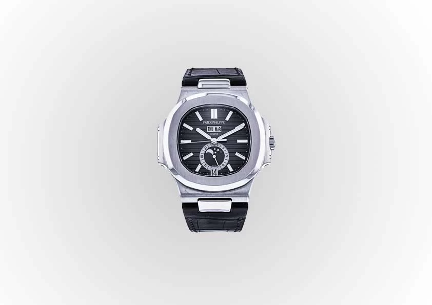 Presenting the Patek Philippe Nautilus 5726A-001, a true masterpiece in the world of luxury timepieces. Crafted in the year 2019, this watch exemplifies Patek Philippe's commitment to horological excellence. Complete with its original box and papers, this watch is a testament to its authenticity and heritage. With a product code of 252388, it's backed by a Watchfinder warranty of 24 months, providing you with peace of mind.The 40mm steel case of the Nautilus 5726A-001 not only showcases timeless design but also ensures durability. Its automatic movement guarantees precise timekeeping, a hallmark of Patek Philippe's craftsmanship. The black alligator leather bracelet, measuring a comfortable 20 cm in length, adds a touch of sophistication to your wrist.The black baton dial exudes elegance and readability, making it suitable for both formal occasions and everyday wear. With a remarkable water resistance of up to 120 meters, this Nautilus is versatile enough to accompany you on various adventures. Elevate your wristwear game with the Patek Philippe Nautilus 5726A-001, a symbol of both luxury and reliability, designed to make a statement wherever you go.
