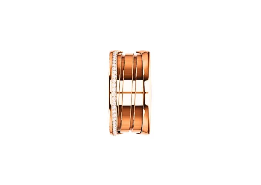 A true masterpiece that exudes elegance and sophistication. Drawing inspiration from the iconic Colosseum, Bulgari has crafted a ground-breaking statement of their creative vision. This extraordinary three-band ring in 18 kt yellow gold is a testament to the brand's commitment to celebrating the future.