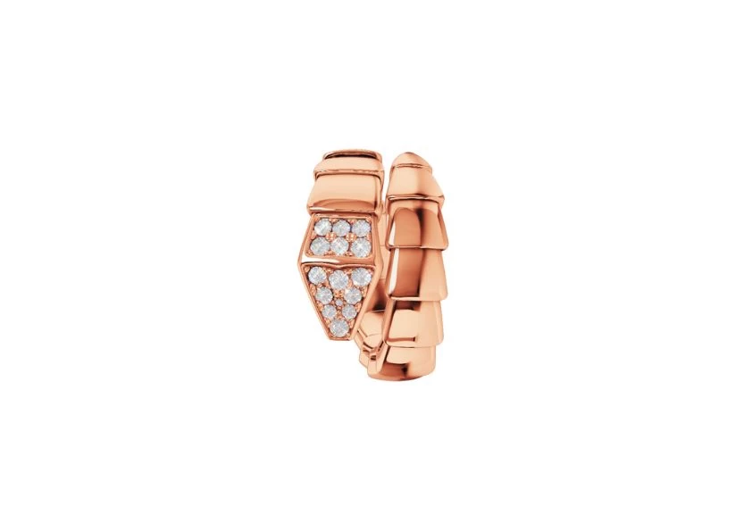 DescriptionIntroducing the Preloved: Serpenti Viper one-coil ring in 18 kt rose gold, adorned with exquisite pavé diamonds on the head. Prepare to be captivated by Bulgari's homage to its spirit animal, as it masterfully encapsulates the allure of seduction within this mesmerizing creation. |