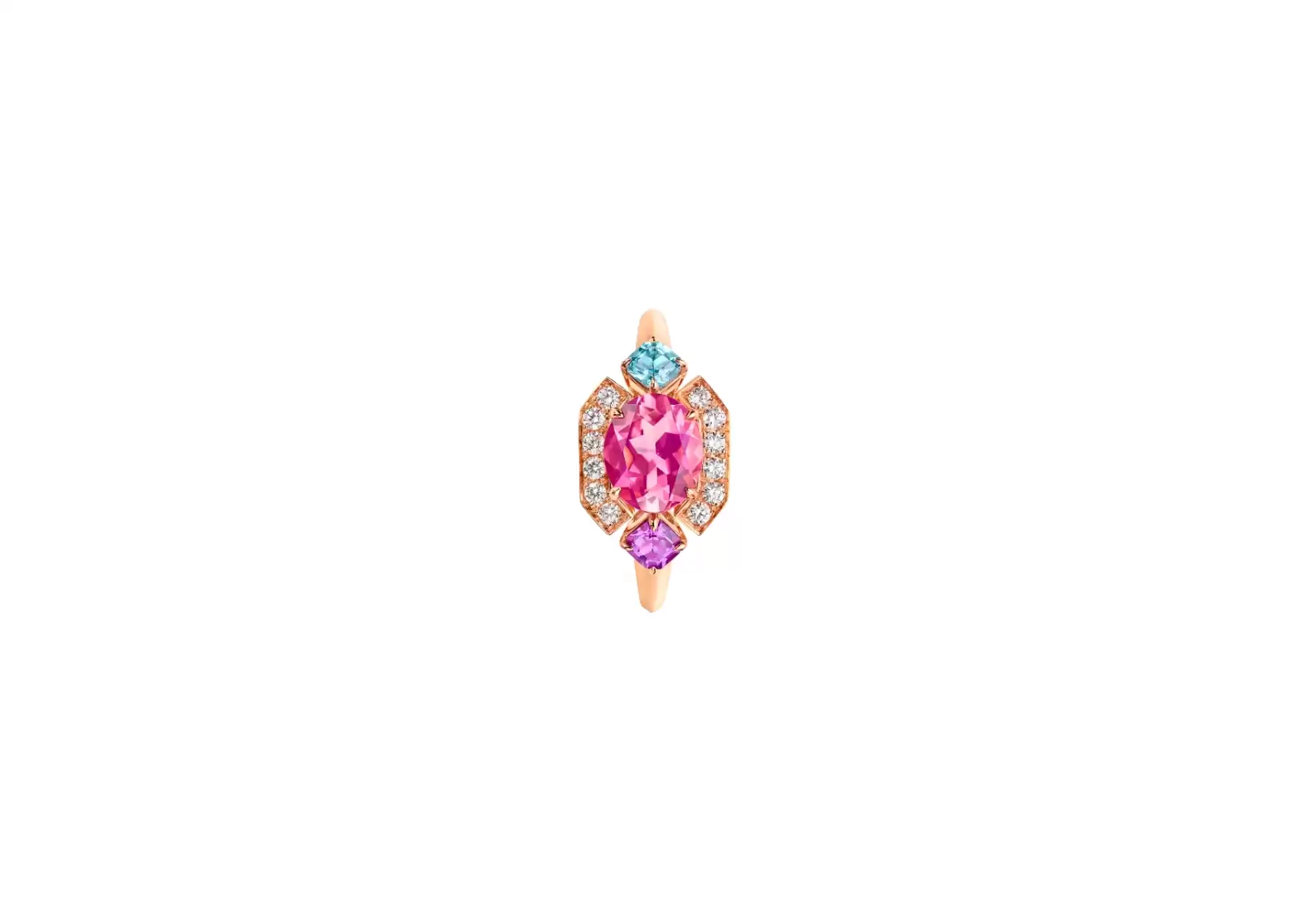 Don't miss out on the opportunity to own a truly remarkable piece of jewelry. Order your Allegra 18 kt rose gold ring with pink tourmaline, amethyst, blue topaz, and pavé diamonds today and let your vibrant personality shine through.