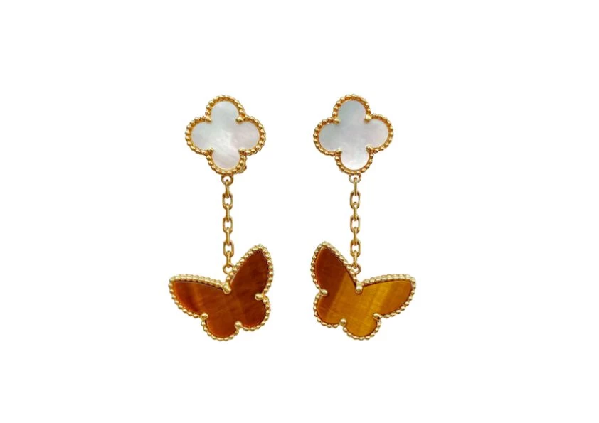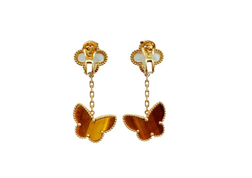 Adding a touch of warmth and charm, the Lucky Alhambra earrings also feature two tiger's eye stones. Known for their rich golden-brown hues and captivating chatoyancy, tiger's eye stones bring a sense of boldness and vitality to these earrings.