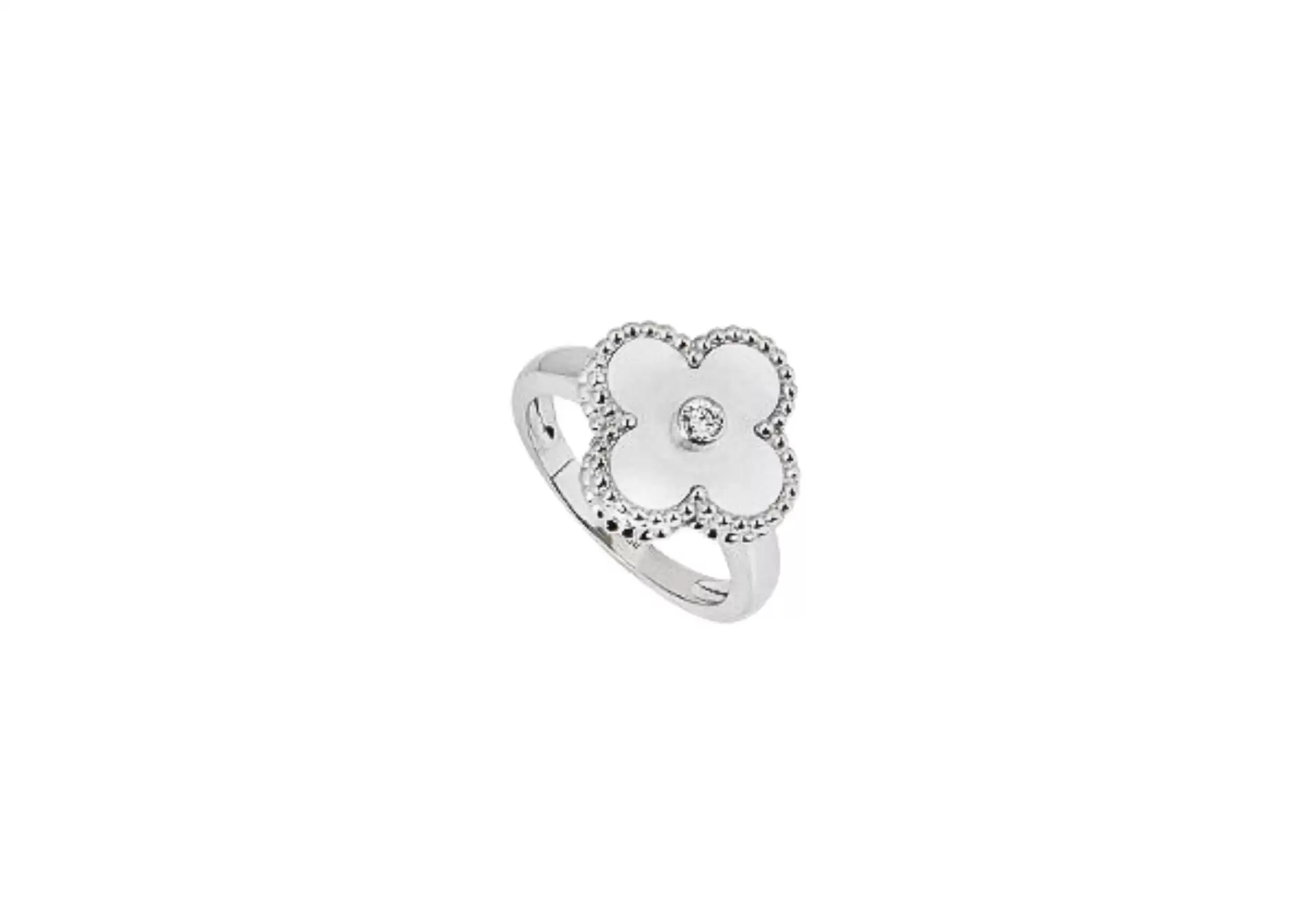 Introducing the exquisite Preloved: Vintage Alhambra ring by Van Cleef & Arpels. Crafted with meticulous attention to detail, this stunning piece is made from rhodium plated 18K white gold, ensuring its durability and timeless elegance.