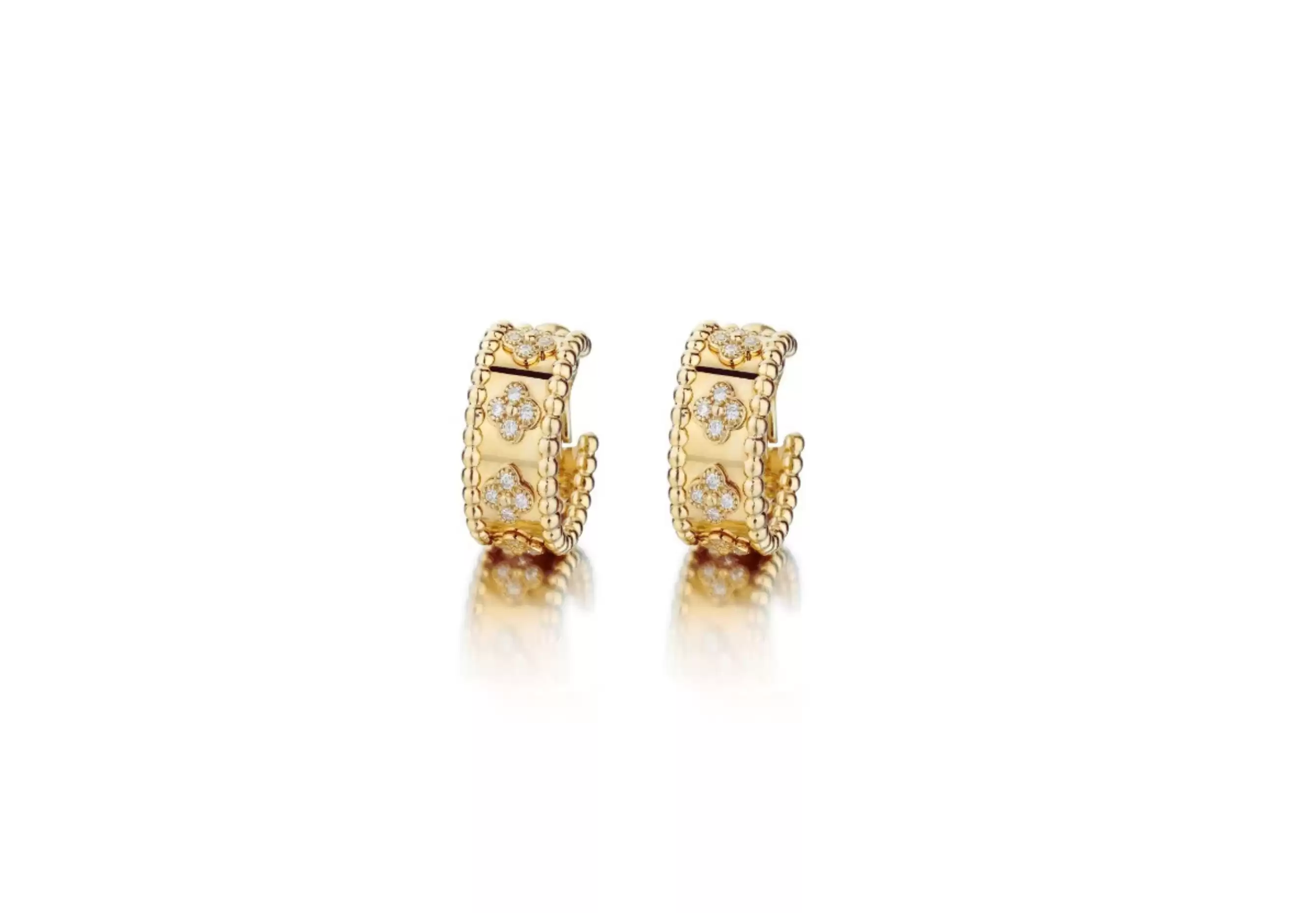 Embrace the allure of luxury and elegance with these remarkable earrings. Indulge in the beauty of 18K yellow gold and the brilliance of round diamonds, all encapsulated in the iconic Perlée clovers design. Elevate your style and make a statement with these remarkable Van Cleef & Arpels earrings.