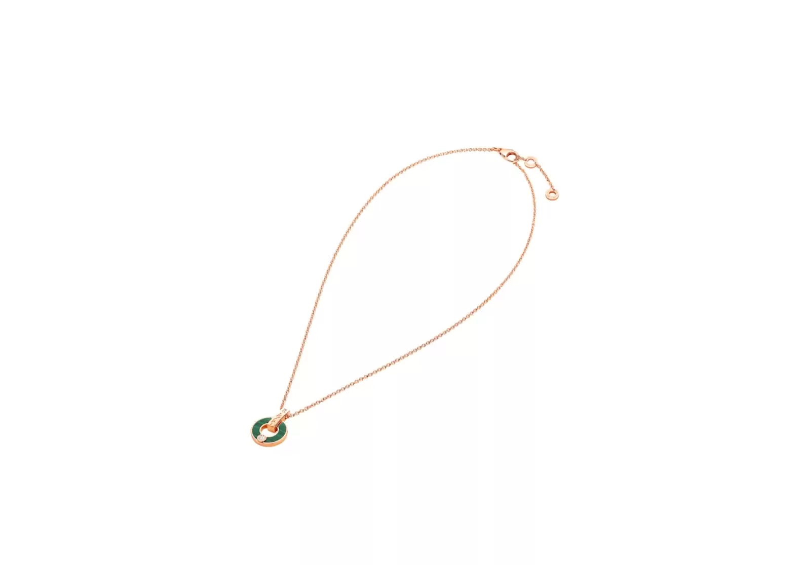 Made from luxurious 18kt rose gold, this necklace exudes a warm and radiant glow, adding a touch of opulence to any ensemble. The addition of malachite elements further enhances its allure, infusing the piece with a vibrant burst of color that is both captivating and alluring.