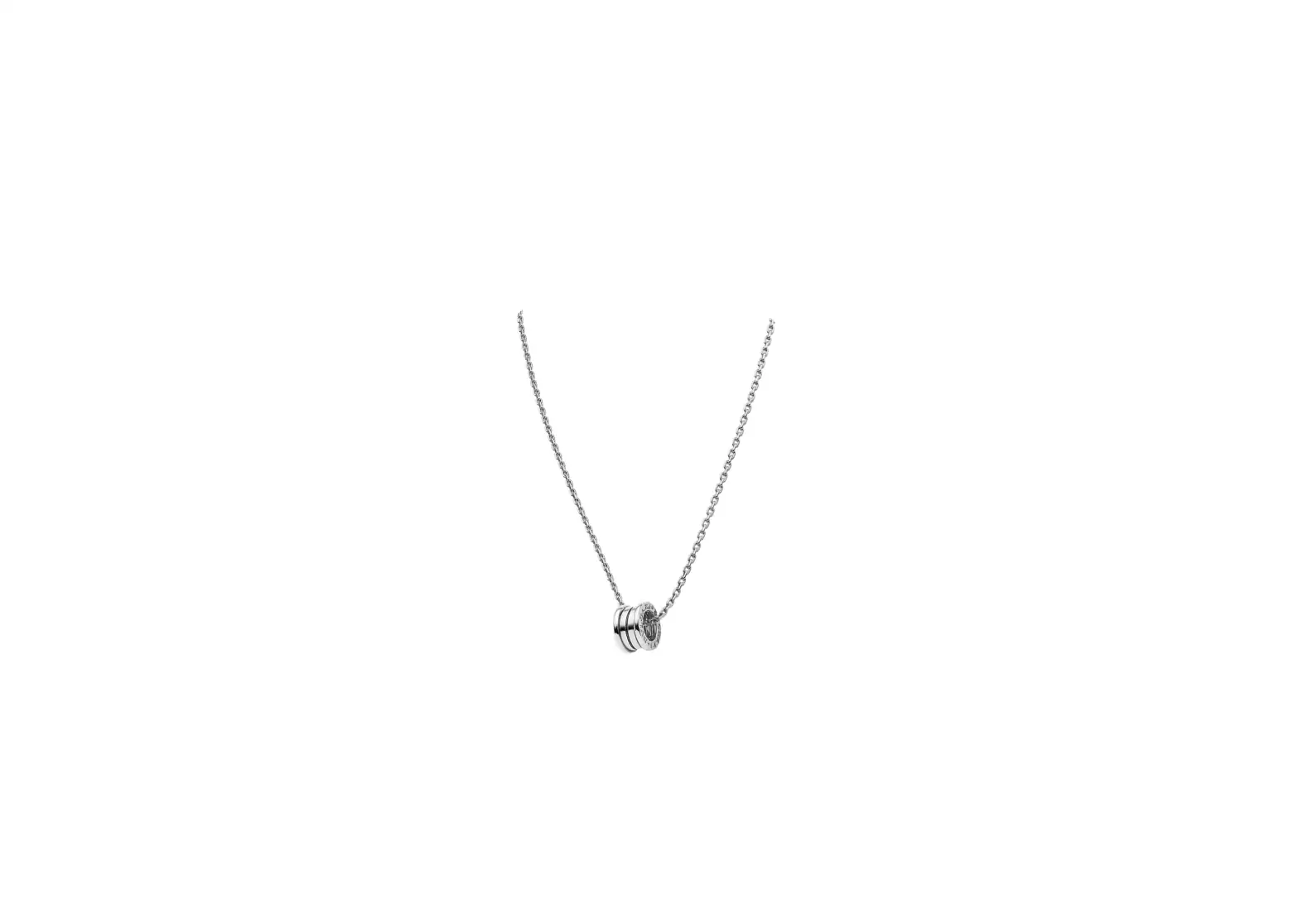 ntroducing the Bvlgari Zero1 pendant necklace in 18 kt white gold, a true masterpiece that embodies the audacious and visionary spirit of Bvlgari. Inspired by the iconic Colosseum, this groundbreaking piece is a testament to Bvlgari's daring creative vision.