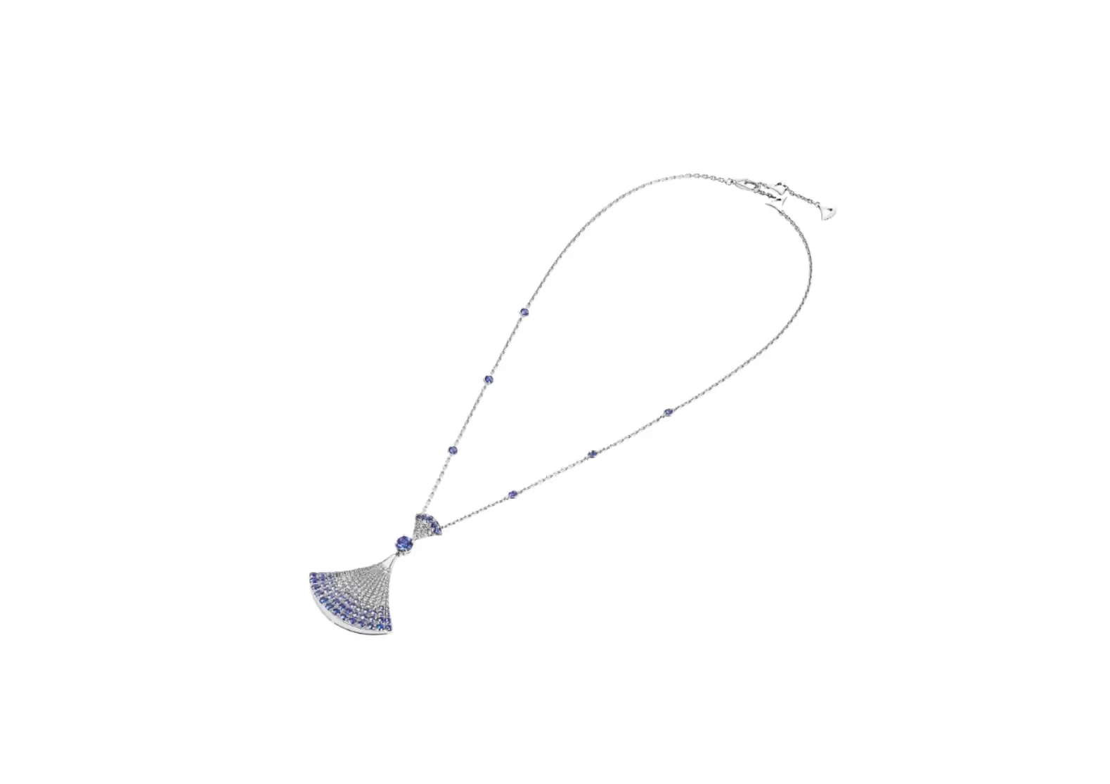 Inspired by the captivating mosaics of the Roman Caracalla Baths, this necklace features a stunning fan-shaped motif that exudes femininity and refinement. Crafted with meticulous attention to detail, it showcases Bvlgari's unwavering connection to the Eternal City through its modern design and the radiant sparkle of precious stones.